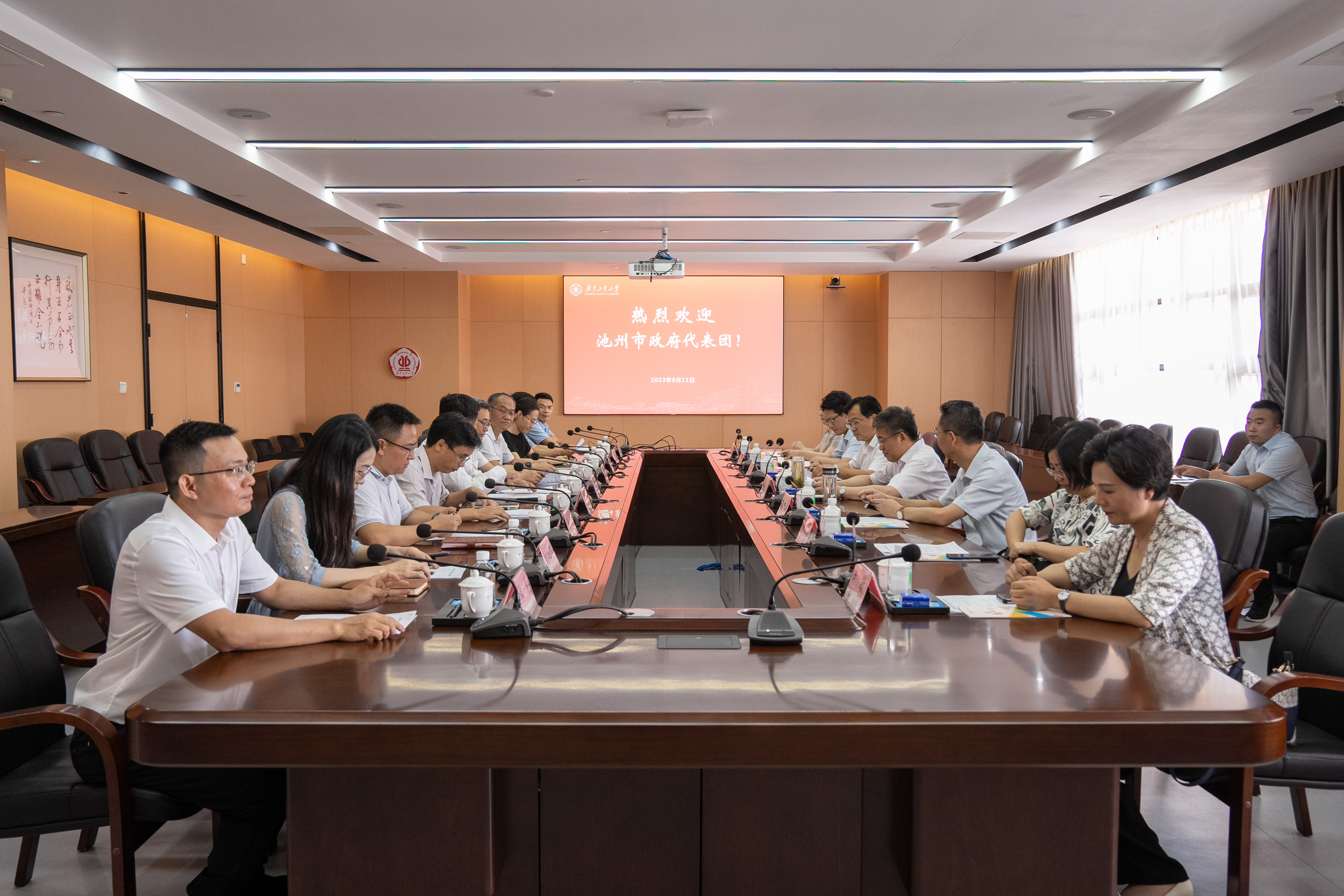 8月11日上午,安徽省池州市市委副书记、市长朱浩东一行11人到学校考察调研,学校党委常委、副校级干部张学理在大学城校区行政楼702会议室会见来宾,机关党委、科学研究管理部、产业技术研究院与开发院、科技处、人事处、轻工化工学院等单位相关负责人以及教师代表参加了座谈。