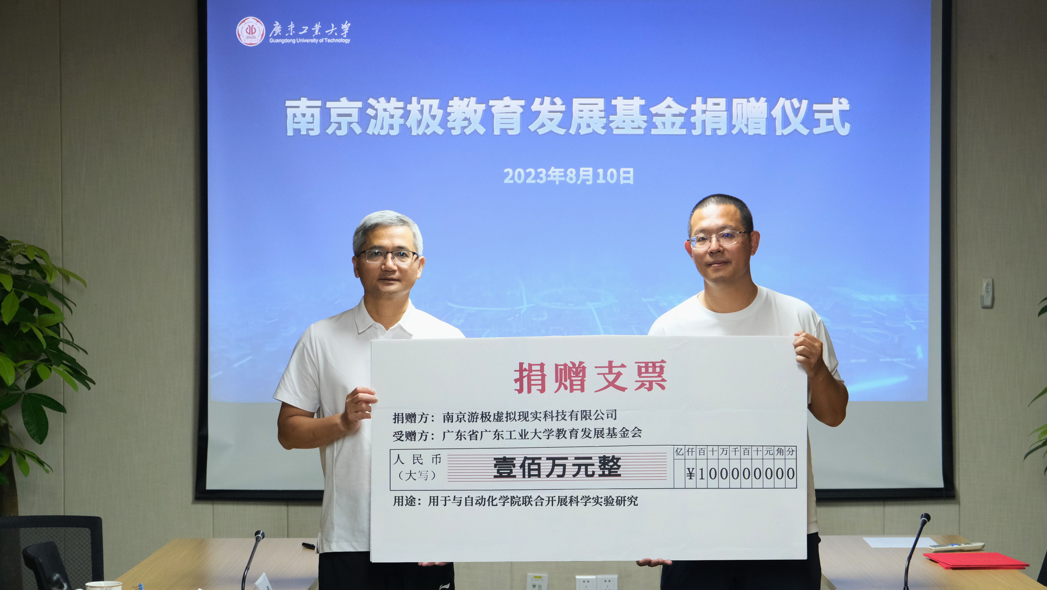 近日,学校党委副书记陈卓武带队走访校友企业南京游极虚拟现实科技有限公司,自动化学院负责人及教师代表陪同走访。该公司负责人、自动化学院2000级校友胡建中热情接待,并向学校捐资100万元,用于开展产学研合作。