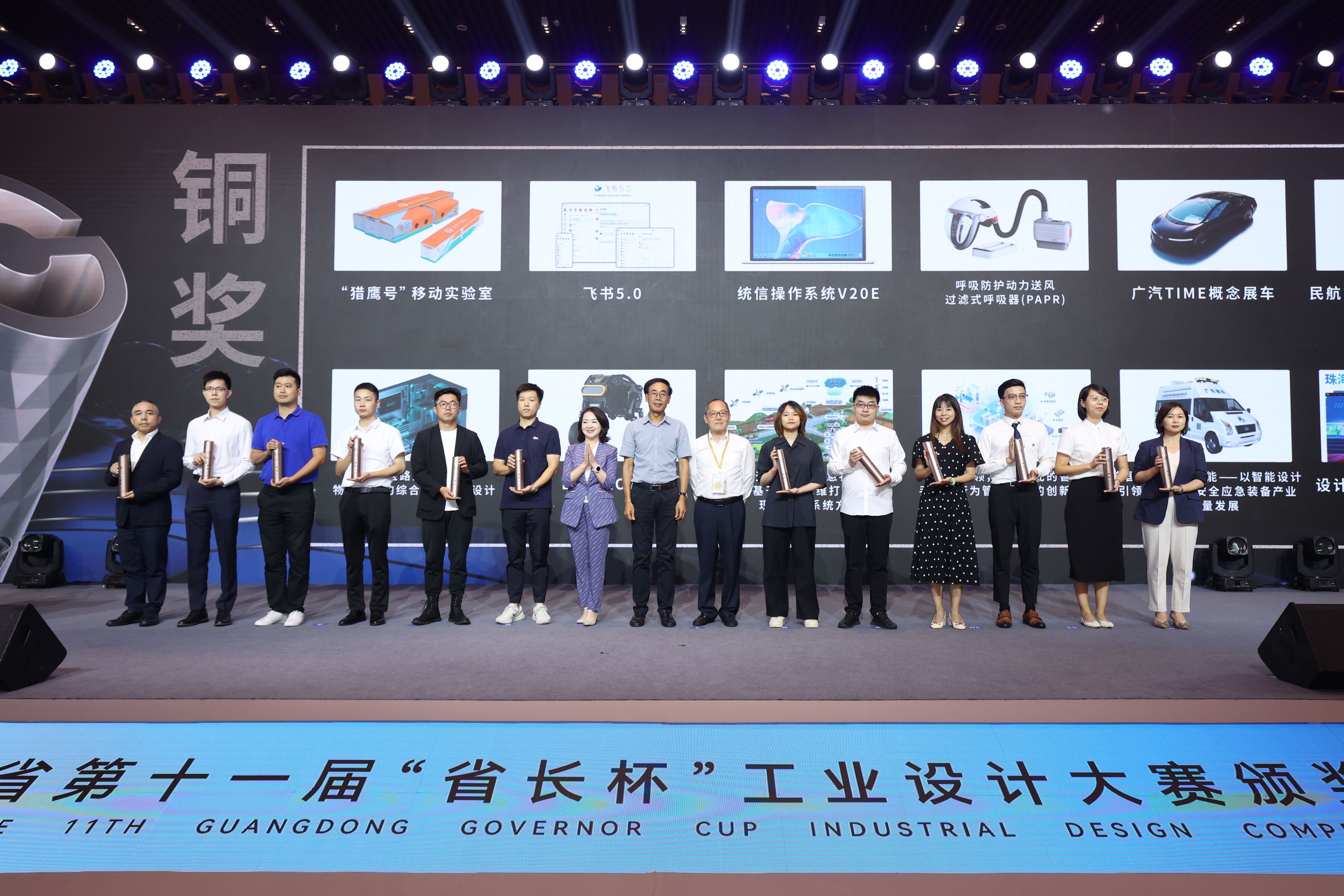 李培松、中国工业设计协同创新平台理事长封昌红、广东省工业设计协会会长胡启志为铜奖获得者颁奖