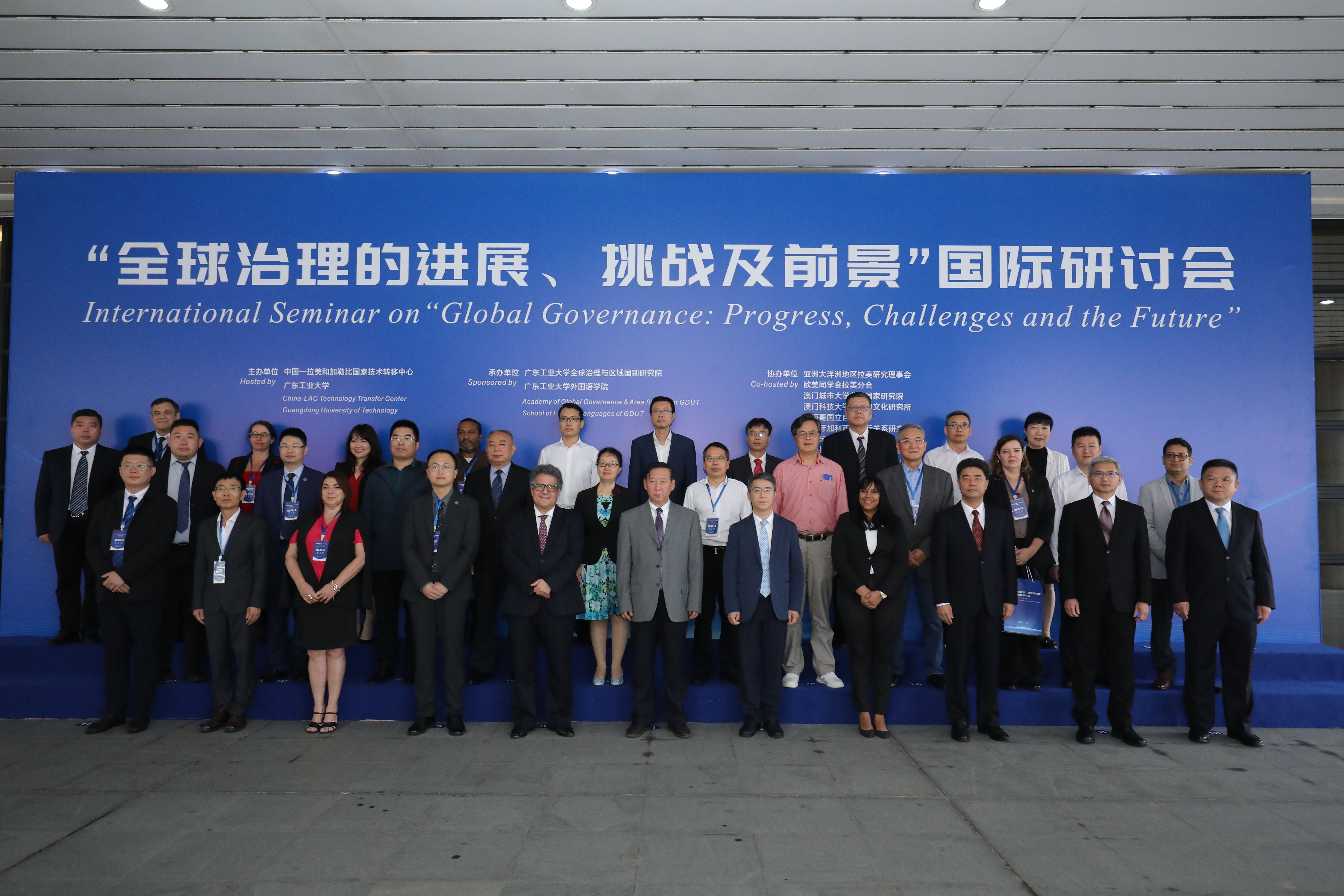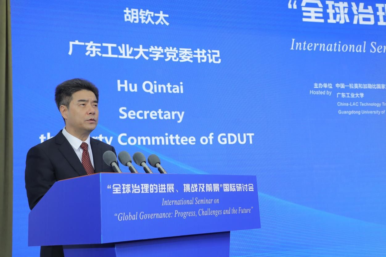 近日,由中国——拉美和加勒比国家技术转移中心、华体会·官方版网站登录入口主办,华体会·官方版网站登录入口全球治理与区域国别研究院、华体会·官方版网站登录入口外国语学院承办的“全球治理的进展、挑战及前景”国际研讨会在学校大讲堂三楼中心报告厅成功举办。中共中央对外联络部原副部长于洪君,广东省科学技术厅副厅长梁勤儒,学校党委书记胡钦太,党委副书记陈卓武,党委常委、副校长杜承铭及相关部处领导出席会议。巴西联邦共和国驻穗总领事艾伦•科埃略•德塞洛斯、古巴共和国驻穗总领事丹妮斯•因凡特、苏里南共和国全民议会议员王传瑞、中国社会科学院拉丁美洲研究所副所长袁东振、肇庆学院副校长胡文涛等近百名国内外专家学者参加本次会议。开幕式由陈卓武主持。