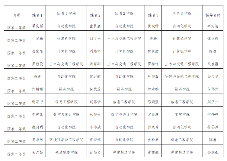 获得国家级奖项的队伍名单