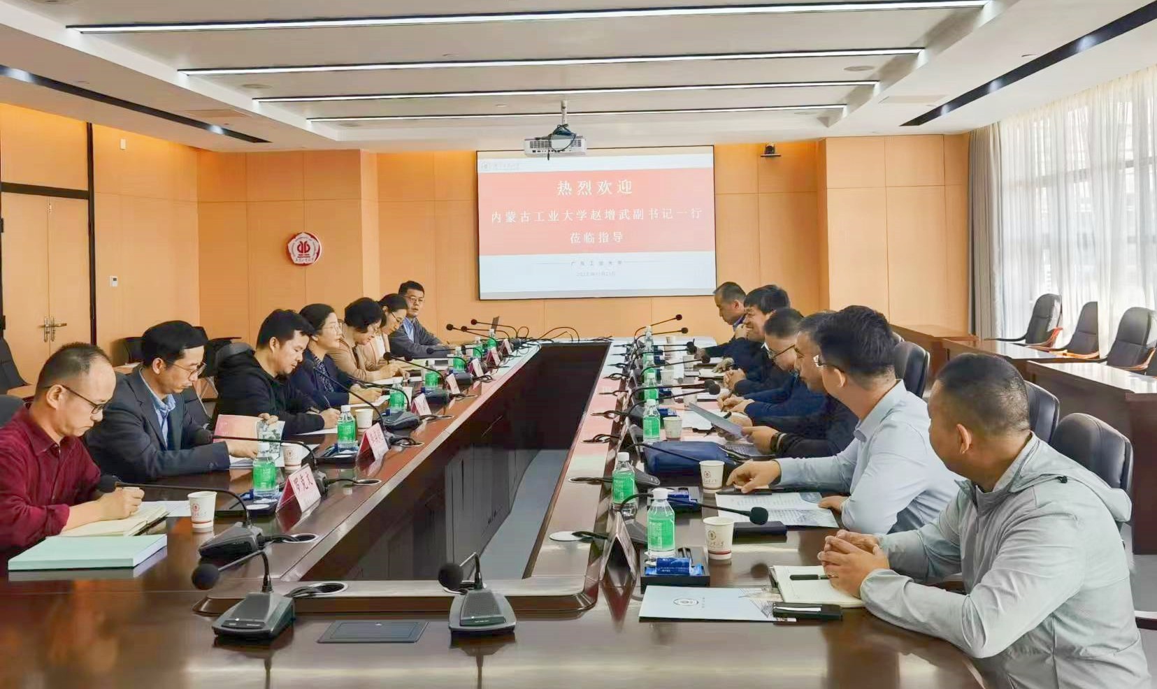 赵增武对学校的热情接待表示感谢。他介绍了内蒙古工业大学的办学情况,分析了目前在人事人才引进工作中遇到的难点,表示希望此次来访能够借鉴广工的先进经验,加强两校交流合作。