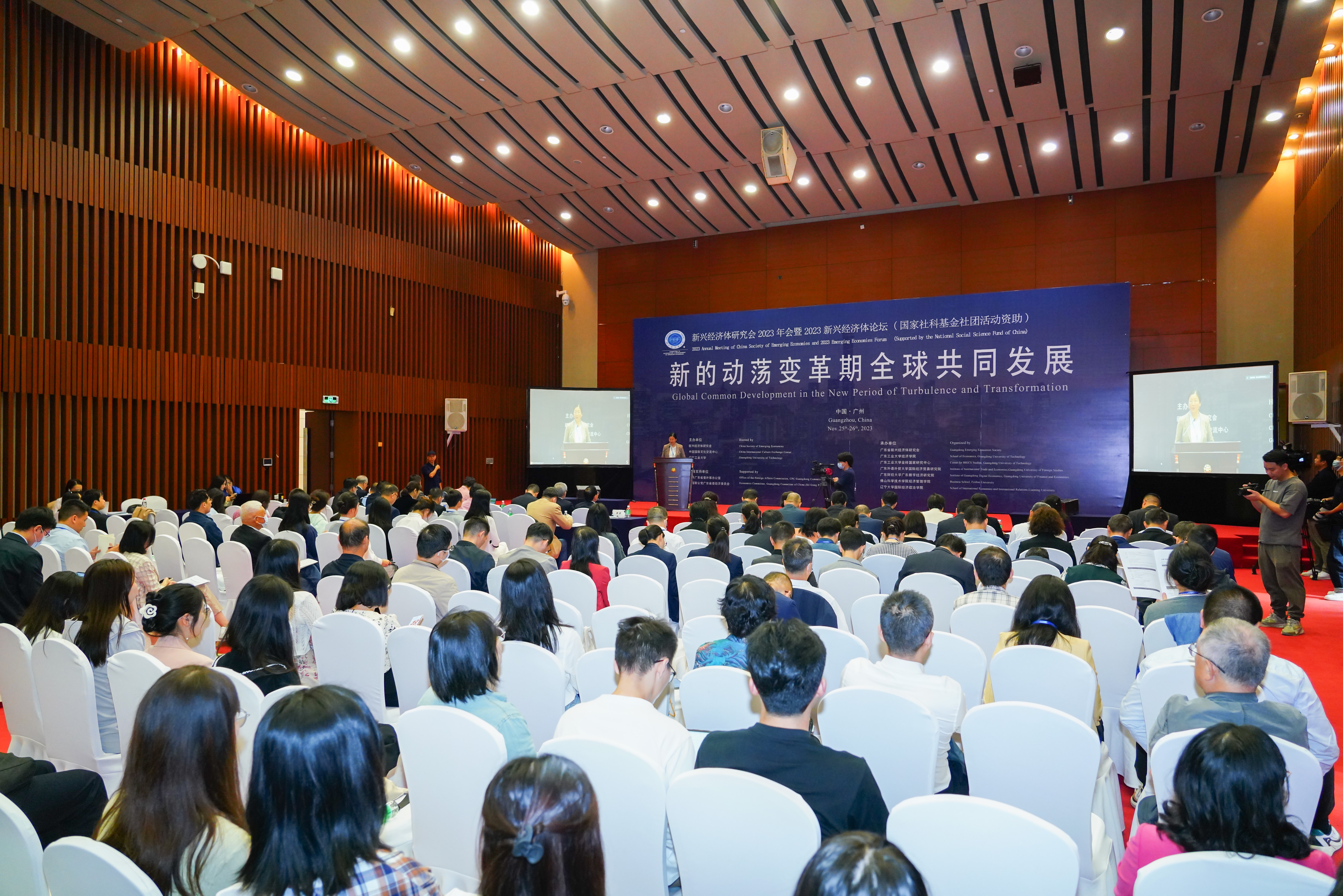 11月25-26日, 2023新兴经济体论坛以及2023新兴经济体智库圆桌会议在广州白云国际会议中心成功举办。来自中国社会科学院、北京大学、巴西圣保罗州州立大学、俄罗斯特维尔州立大学、印度德里大学、南非茨瓦尼科技大学、埃塞俄比亚外交部外交事务伙伴关系和网络研究所、埃及金字塔政治和战略研究中心、阿联酋趋势研究与咨询中心等国内外高校和研究机构的专家学者以及企业家、官员代表共170余人参与了论坛及会议。