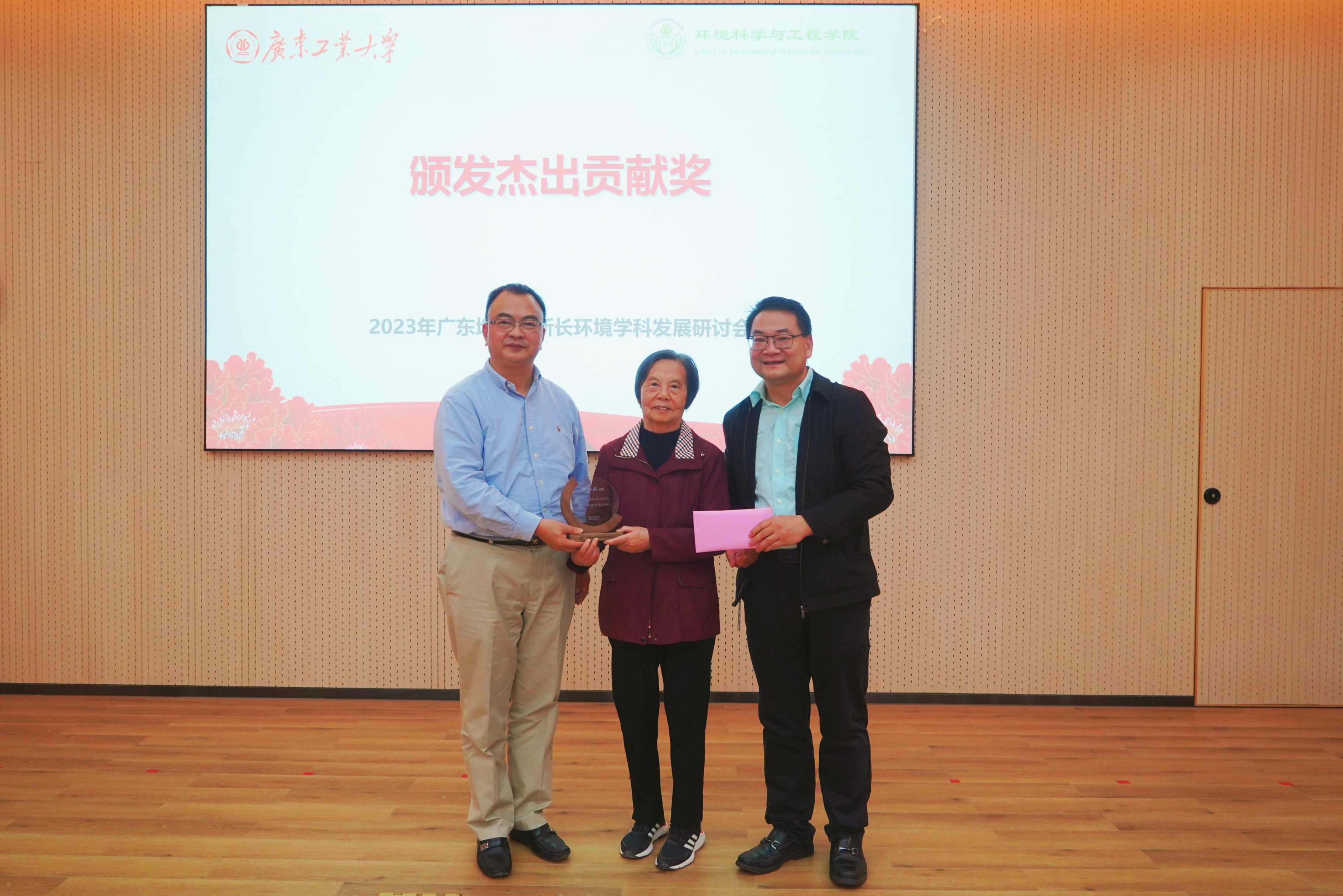 会议首次设立杰出贡献奖,94岁高龄的华南理工大学肖锦教授与中国科学院广州地球化学研究所盛国英教授当选。大会分别介绍了两位教授所取得的成就并为他们颁发了奖杯和奖金。
