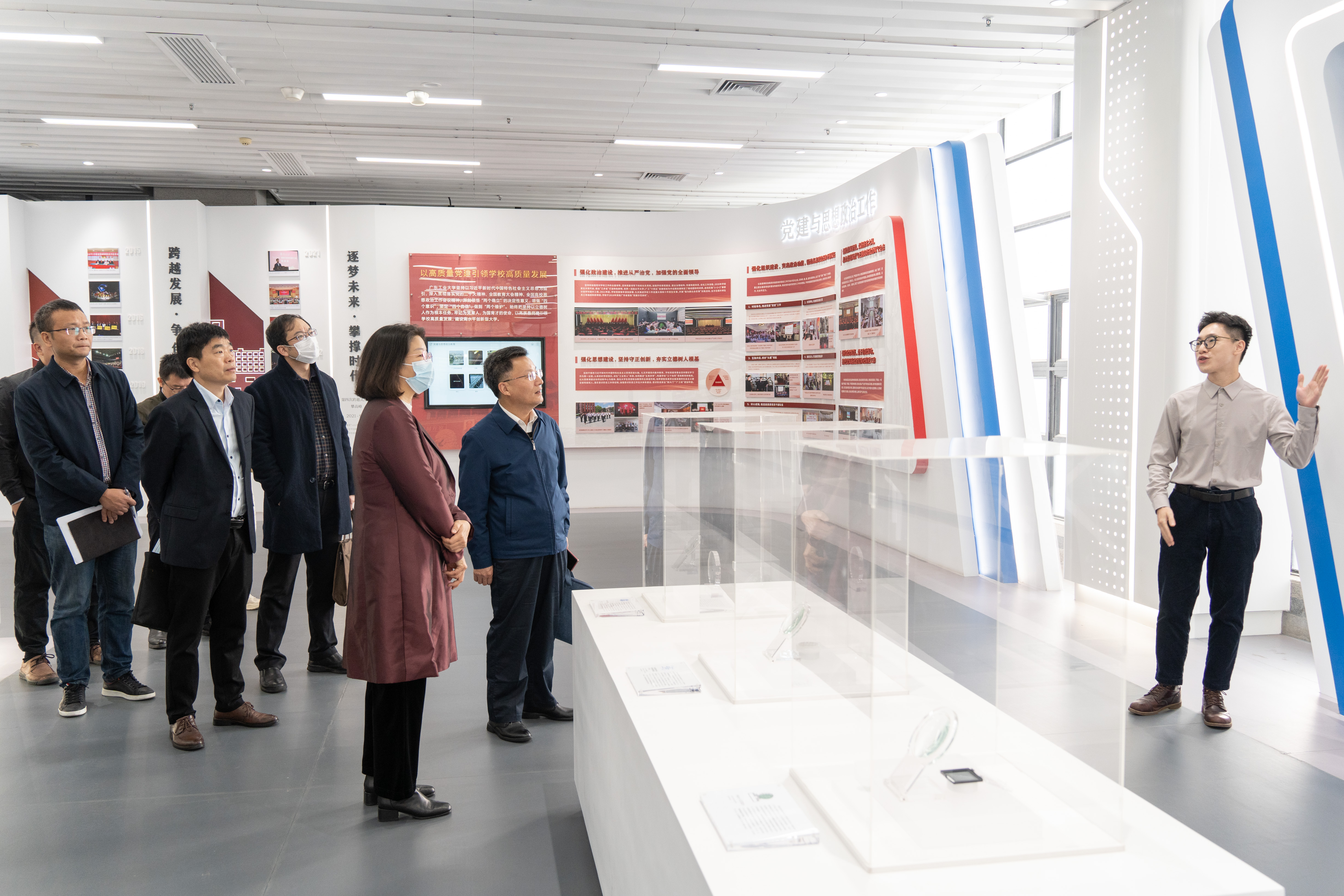 访问期间,温小波一行参观了位于行政楼二楼的智慧展厅,了解了学校的发展历程及办学成果等。