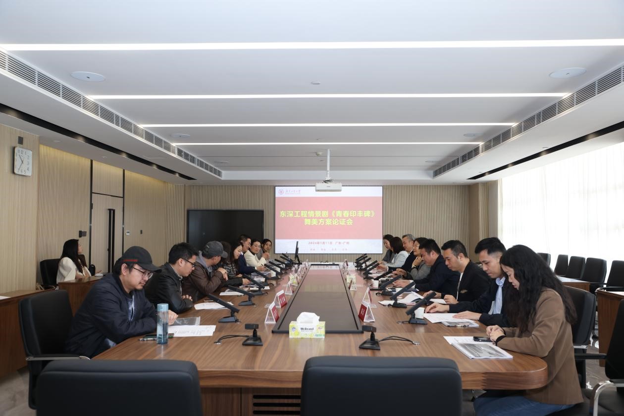 为扎实推进东深工程情景剧《青春印丰碑》赴港演出交流工作,1月11日上午,《青春印丰碑》剧本优化方案论证会、舞美设计方案论证会先后在大学城校区行政楼602会议室举行。学校党委副书记朱蔚蔚,党委常委、党委宣传部部长张育广,通识教育中心相关负责人,剧目编创团队主创人员及有关专家参加了论证会。香港理工大学文化及设施推广处主管杜嘉慈女士、许先进助理总监以及我校港澳台办相关人员参加了舞美设计方案论证会,使方案更符合香港理工大学的舞台实际。