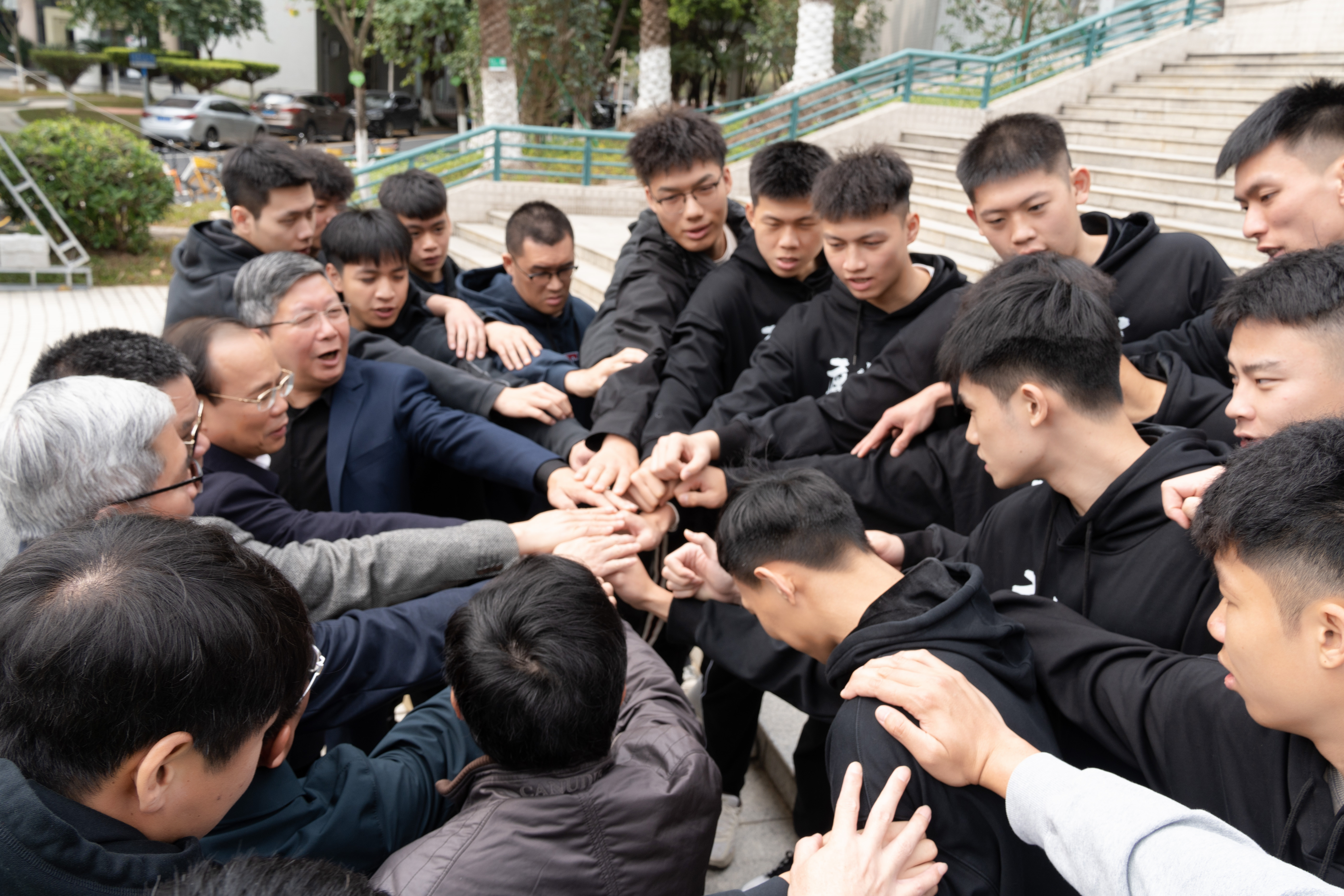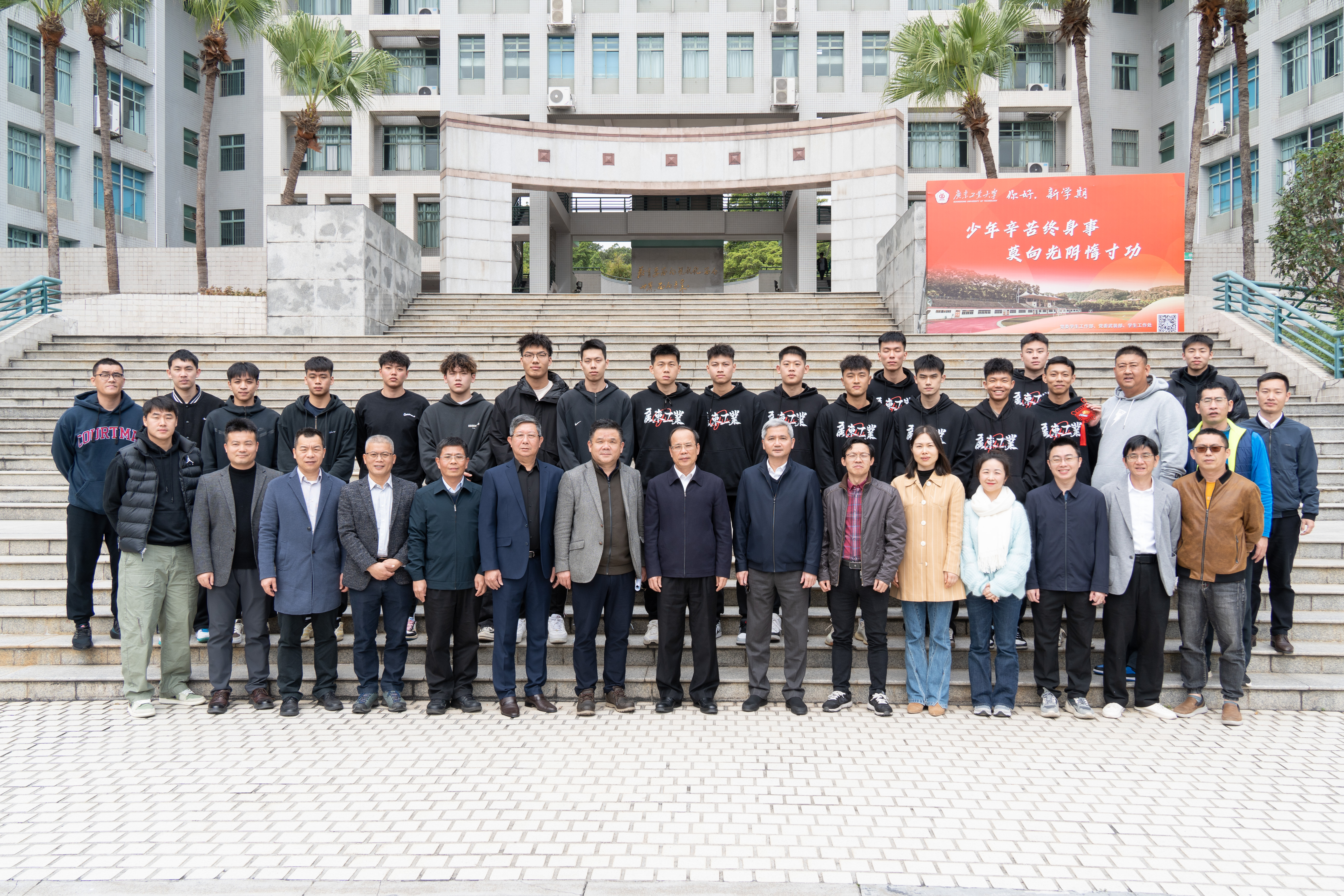 邱学青认真听取体育学院、篮球队教练团队的汇报以及队员代表发言,与大家共同分析目前球队的现状和备战对策。他对大家的辛苦付出表示感谢,对篮球队提出殷切希望:一要继续传承发扬好广工男篮精神,敢打敢拼,不断丰富和发展广工男篮精神内涵实质;二要继续刻苦训练,打牢体能基础,练好“真功夫”,打好每一场比赛;三要“五育并举”,做到全面发展,不断提升自身综合素养;四要以身作则,结合自身经历讲好广工故事,讲好体育运动故事,积极承担宣传广工文化、广工特色、广工精神的责任,做广大青年学子的榜样。