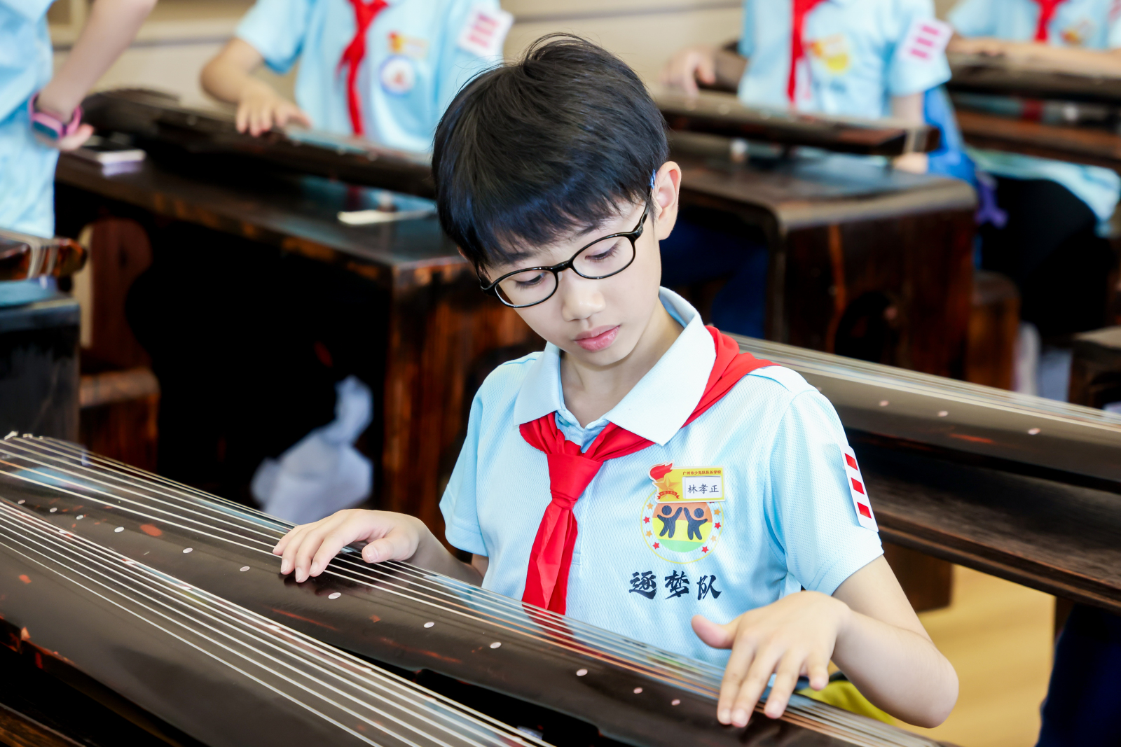 在不远处的古琴工作坊,铮铮弦音正带领孩子们领略千年古韵。在学习和体验弹奏古琴后,来自队长学校的林盈希同学说:“古琴能够弹奏出特别的音色和韵味,老师说这是独属于我们东方的声音,让我们感到骄傲和自豪,中国传统音乐的魅力也让我们着迷。”