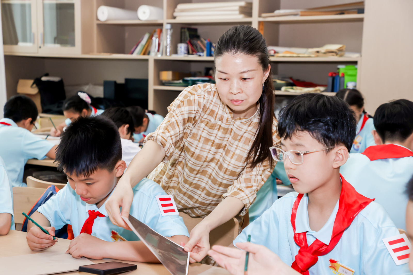 敦煌壁画临摹让传统的书画课程多了一层神秘的色彩。在书画工作坊课堂上,老师手把手地进行指导孩子们学习敦煌壁画临摹技法,感受“行五十步穿越百年,行百步穿越千年”的璀璨文化。