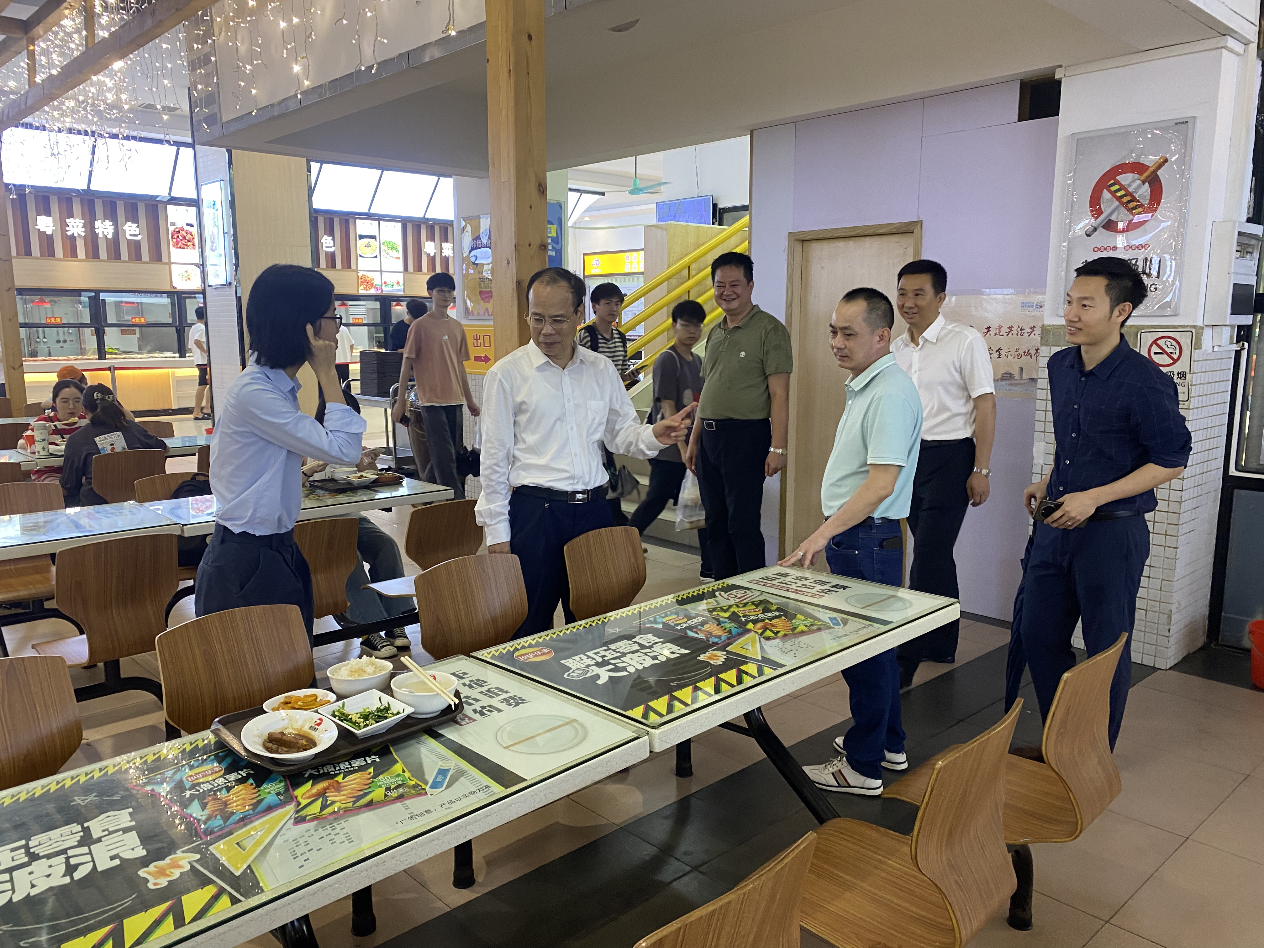 随后,邱学青来到生活东区,深入考察了学生宿舍及食堂工作,对后勤保障工作予以肯定。他指出,生活区是学生课堂之外最重要的活动场所,应当持续改善师生生活环境,学生宿舍一楼架空层可以进行装修改造,增加学生活动空间,加强环境育人功能,同时要加强食堂食品安全监管,提高菜品质量和服务水平,不断满足师生的多样化和个性化饮食需求。