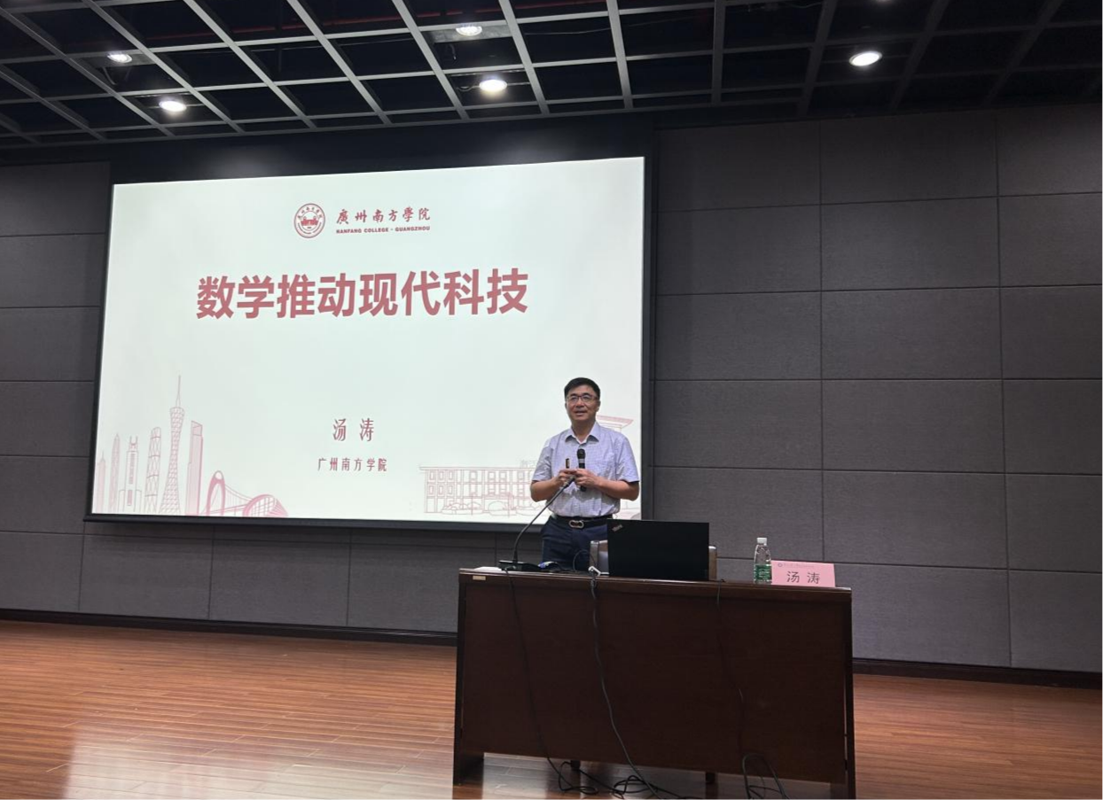 在“长基”院士讲坛上,汤涛院士在龙洞校区学术报告厅作题为《数学推动现代科技》的讲座。王振友、数学与统计学院主要负责人、师生代表共300余人参加讲座,讲座由王振友主持。
