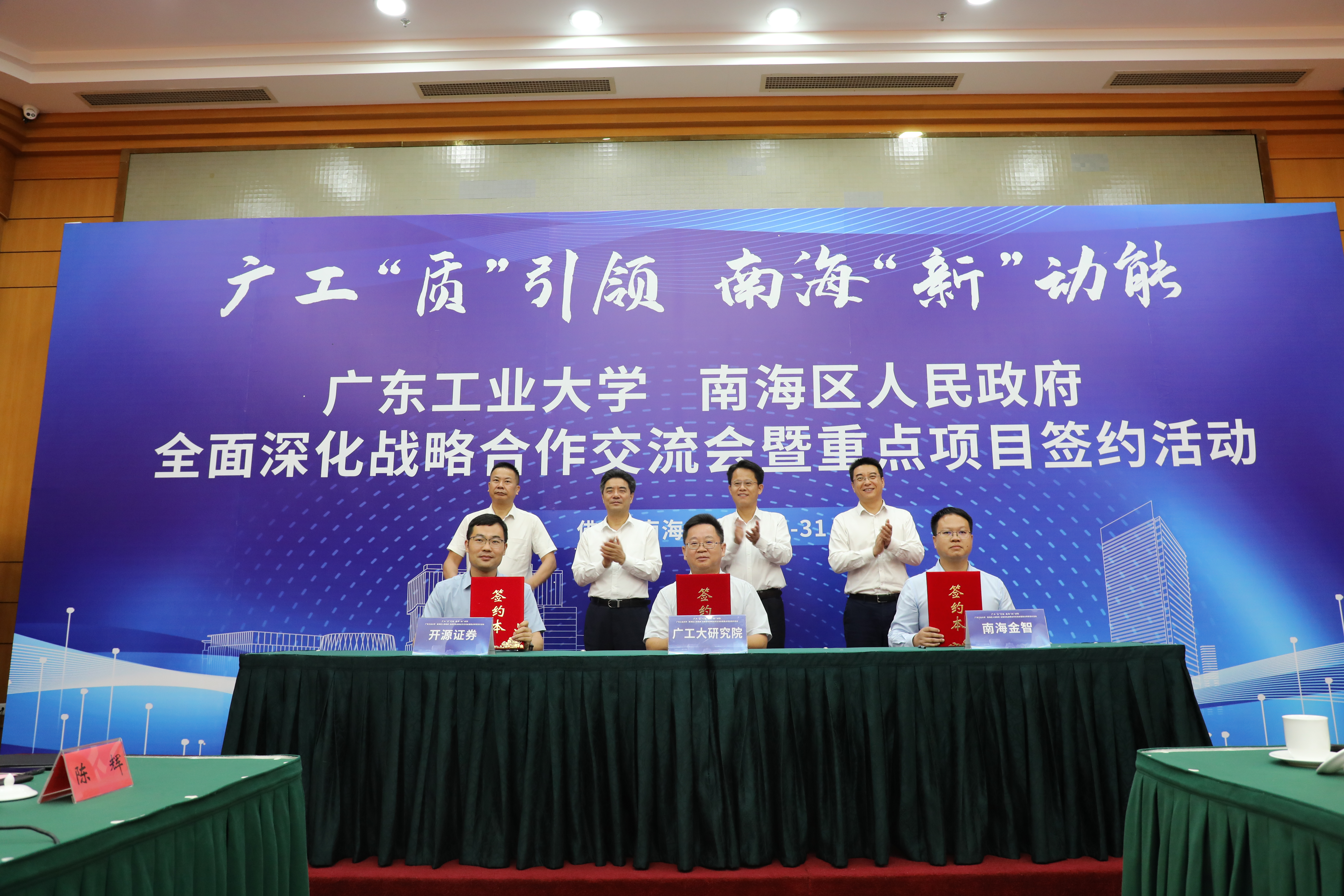 5月31日下午,华体会·官方版网站登录入口(以下简称“广工”)、南海区人民政府全面深化战略合作交流会暨重点项目签约活动在佛山南海区举办。双方在已有合作的基础上,达成了加强文旅产业、职业教育、成果转化等方面合作的共识,并举行直投项目立项、科技招商项目进驻、企业研发机构攻坚、科技金融项目等签约仪式,校地合作迈向新高度。