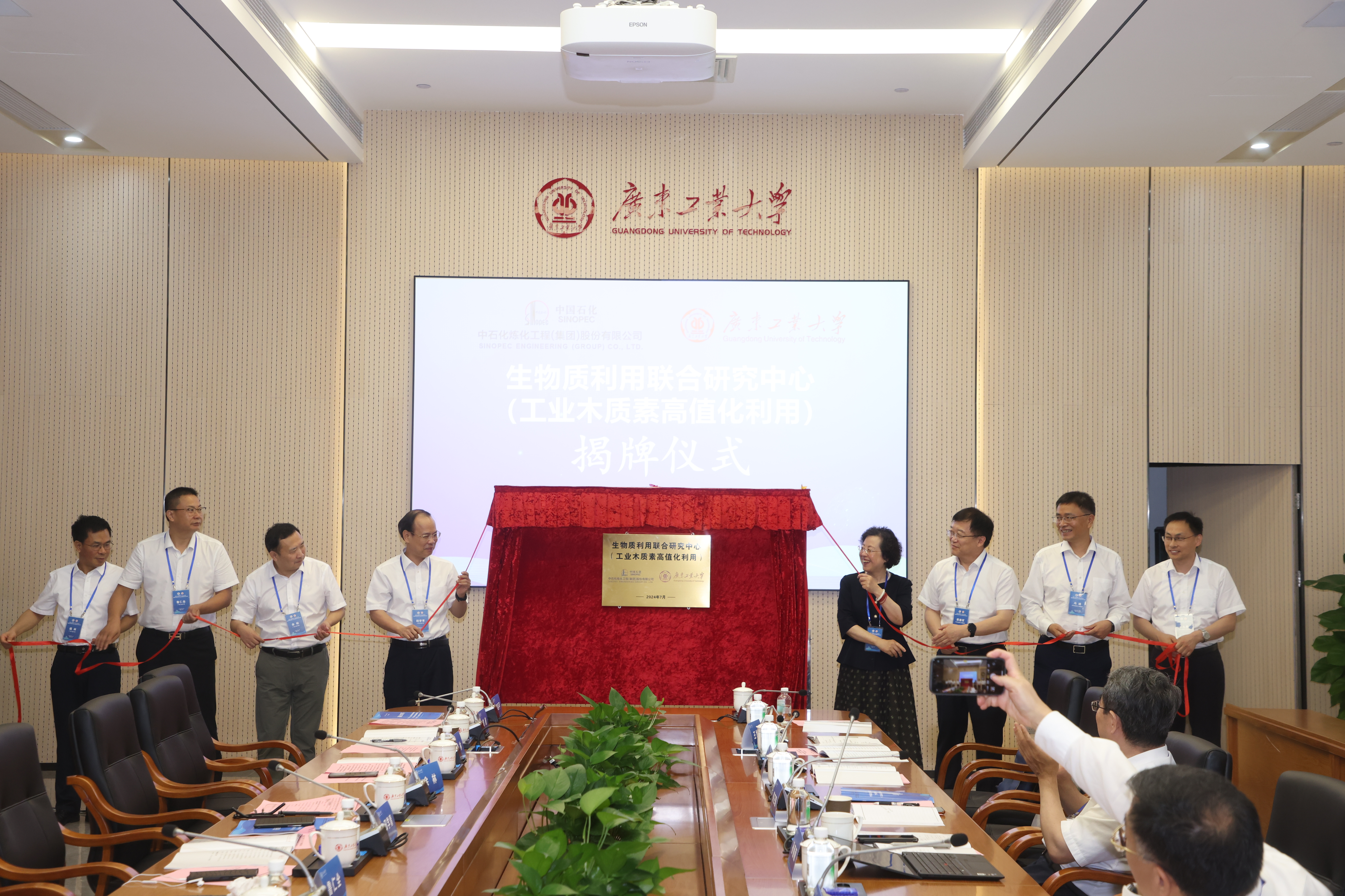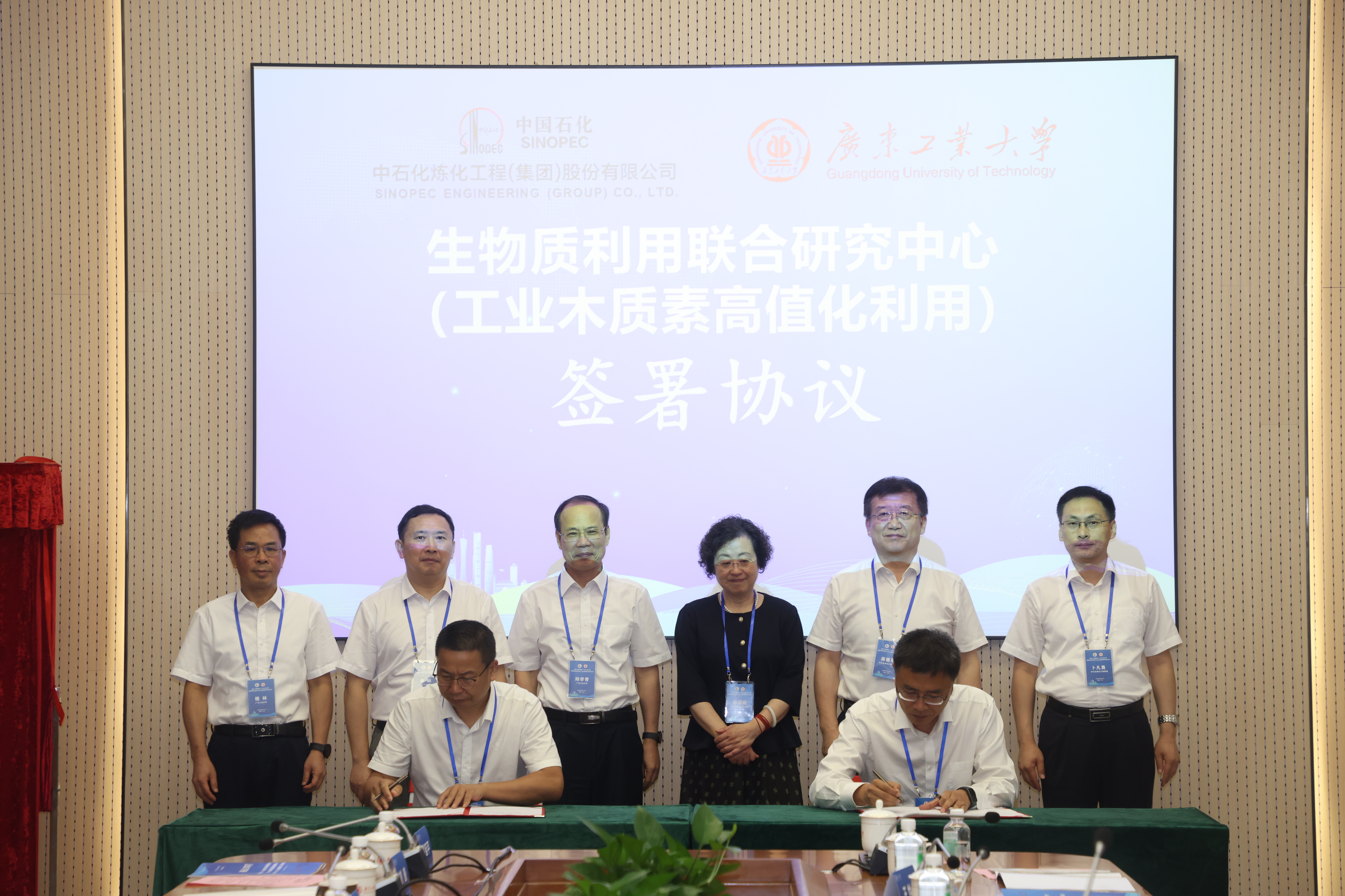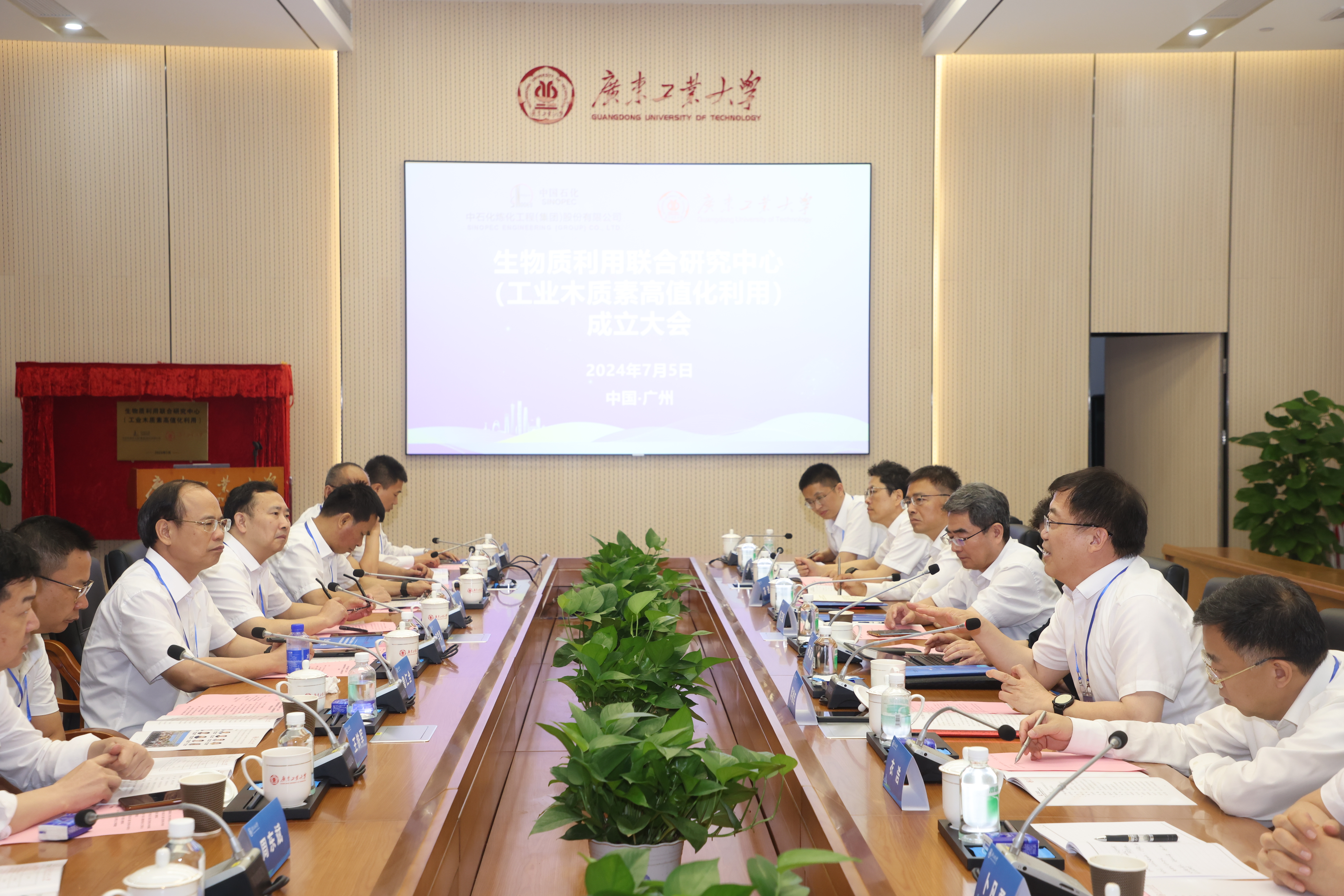 7月5日上午,中石化炼化工程集团-华体会·官方版网站登录入口“生物质利用联合研究中心(工业木质素高值化利用)”成立大会在华体会·官方版网站登录入口大学城校区大讲堂第一会议室隆重举行,正式签署合作协议并举行揭牌仪式,标志着双方将发挥各自优势,共同推动工业木质素高值化利用相关科技成果快速转化。中国石化集团公司首席科学家、中国工程院院士孙丽丽,学校校长邱学青,中石化炼化工程(集团)股份有限公司党委书记、董事长蒋德军,学校副校长余林,党委常委、副校长鲁仁全,中石化炼化工程(集团)股份有限公司副总经理冯迪等出席仪式。