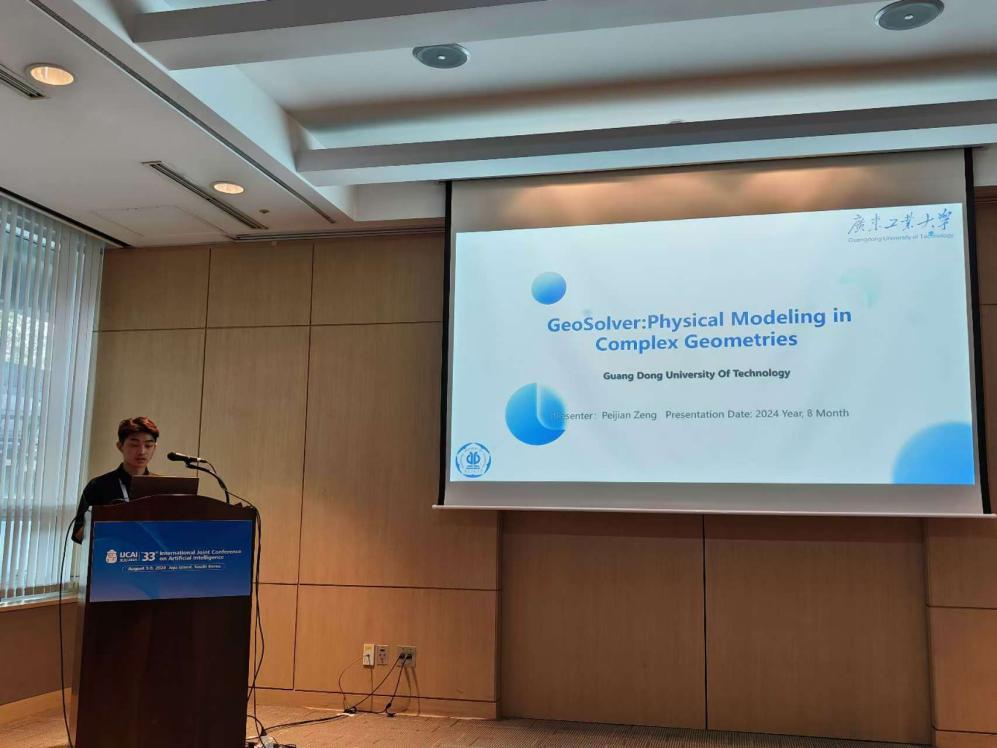 近日,在第33届国际人工智能联合会议IJCAI 2024上,广工计算机学院学生团队(阳爱民教授指导)在“任意三维几何外形车辆的风阻快速预测竞赛”中展现出卓越的创新能力与技术实力,在激烈竞争中荣获A赛道亚军。团队中三位研究生曾培健(硕2022)、郑伟雄(硕2023)、林楠铠(博2022)凭借出色的AI算法设计,借助实验室的计算资源,实现了“任意三维几何外形车辆”风阻的快速预测。曾培健也受邀在IJCAI 2024的 “科学计算·流智新篇” 论坛中做了题为“GeoSolver Physical Modeling in Complex Geometries”的技术报告,详细介绍了GeoSolver利用蒙特卡罗近似方法和物理注意力机制有效解决PDE求解中复杂几何体的物理关联建模问题的思路,并展示了其在工业仿真中的高效性和可扩展性。此次团队在IJCAI 2024的优异表现,不仅为中国高校在人工智能领域的国际舞台上赢得了荣誉,也为汽车产业的可持续发展贡献出中国智慧。