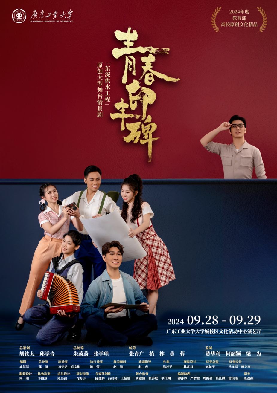 该剧是广工庆祝中华人民共和国成立75周年系列活动之一,也是学校创新形式开展“铸魂:精神谱系宣讲”活动,传承红色基因、弘扬东深精神的生动实践。剧目获教育部2024年度高校原创文化精品称号,讲述了上世纪60年代初期,为缓解了香港同胞的饮水难题,广工200余名师生毅然奔赴东深供水工程最前线,用汗水、泪水乃至鲜血和生命,把青春镌刻在了东深供水工程的丰碑上的故事。