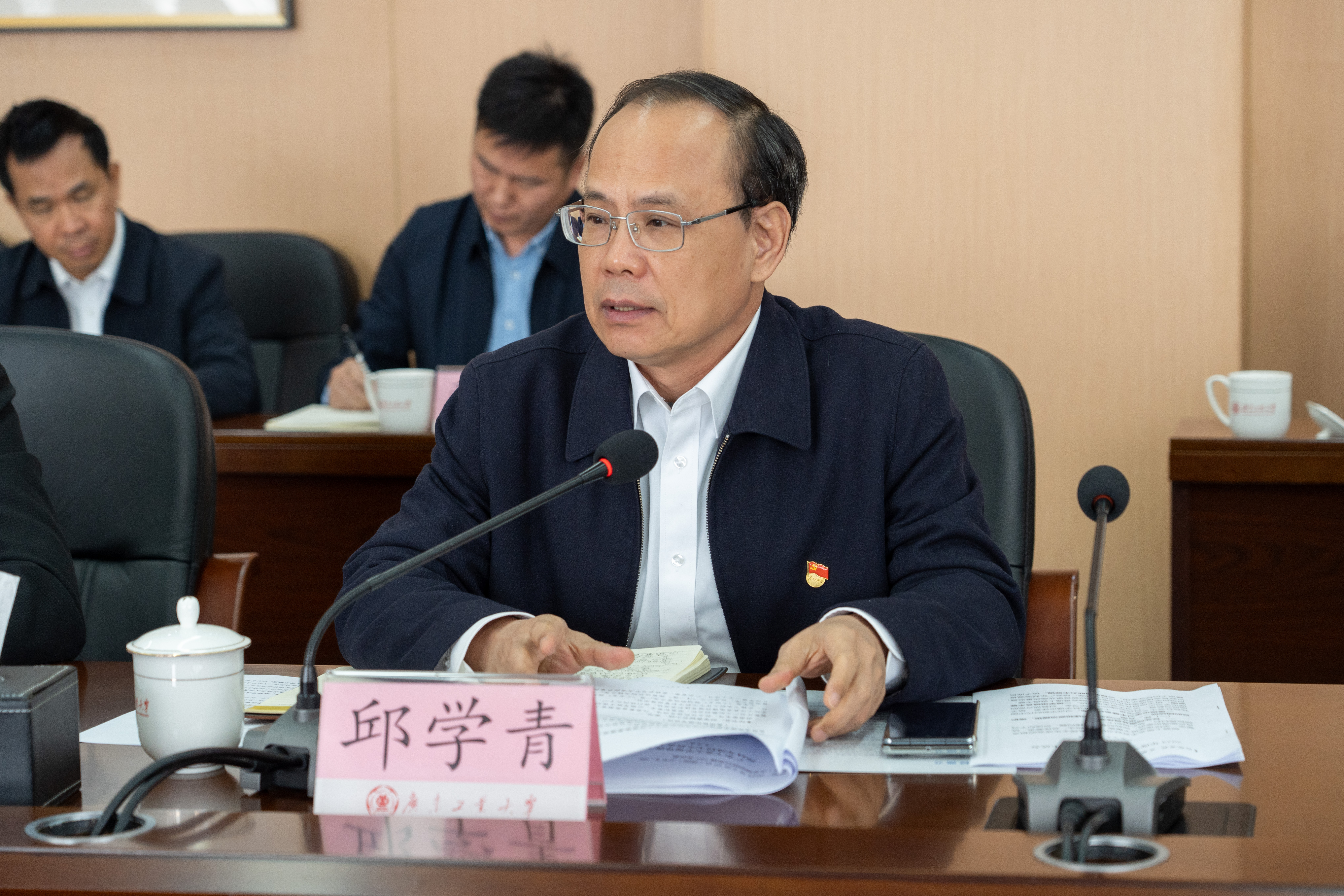 邱学青在总结讲话中指出,今年是“十四五”规划的收官之年,是“十五五”规划的谋篇布局之年,也是广工“冲一流”爬坡迈坎的关键之年。全省高质量发展大会为广工建设高水平创新型大学指明了方向,对党委领导班子观大势、谋大局、抓大事提出了新的更高要求,对党委领导班子加强党的纪律建设,在党的纪律建设中发挥示范表率提出了新的更高要求。党委领导班子要以此次民主生活会为新起点,巩固深化党纪学习教育成果,以彻底的自我革命精神锻造更加坚强有力的领导集体,以严明的纪律推动全面从严治党向纵深发展,为高水平创新型大学建设提供动力保障,推动学校事业不断从胜利走向胜利。一是带头加强党性修养,持续在践行对党忠诚上见真章、出实效。坚持不懈用习近平新时代中国特色社会主义思想凝心铸魂、固本培元,以实际行动忠诚拥护“两个确立”、坚决做到“两个维护”。二是带头严明党规党纪,持续在增强纪律定力上见真章、出实效。从理论源头加深对党的纪律规矩丰富内涵的理解把握,自觉把铁的纪律转化为日常习惯和行动准绳,在学纪、知纪、明纪、守纪上再提升。三是带头勇于担当作为,持续在全面深化改革上见真章、出实效。树立正确政绩观,强化办学治校战略思维、系统思维,锚定一流目标加速建设高水平创新型大学,为不断开创广东现代化建设新局面贡献广工力量。四是带头履行管党治党政治责任,持续在推动全面从严治党上见真章、出实效。坚持用改革精神和严的标准管党治党,以管党治党新成效保障全面深化改革的落实。