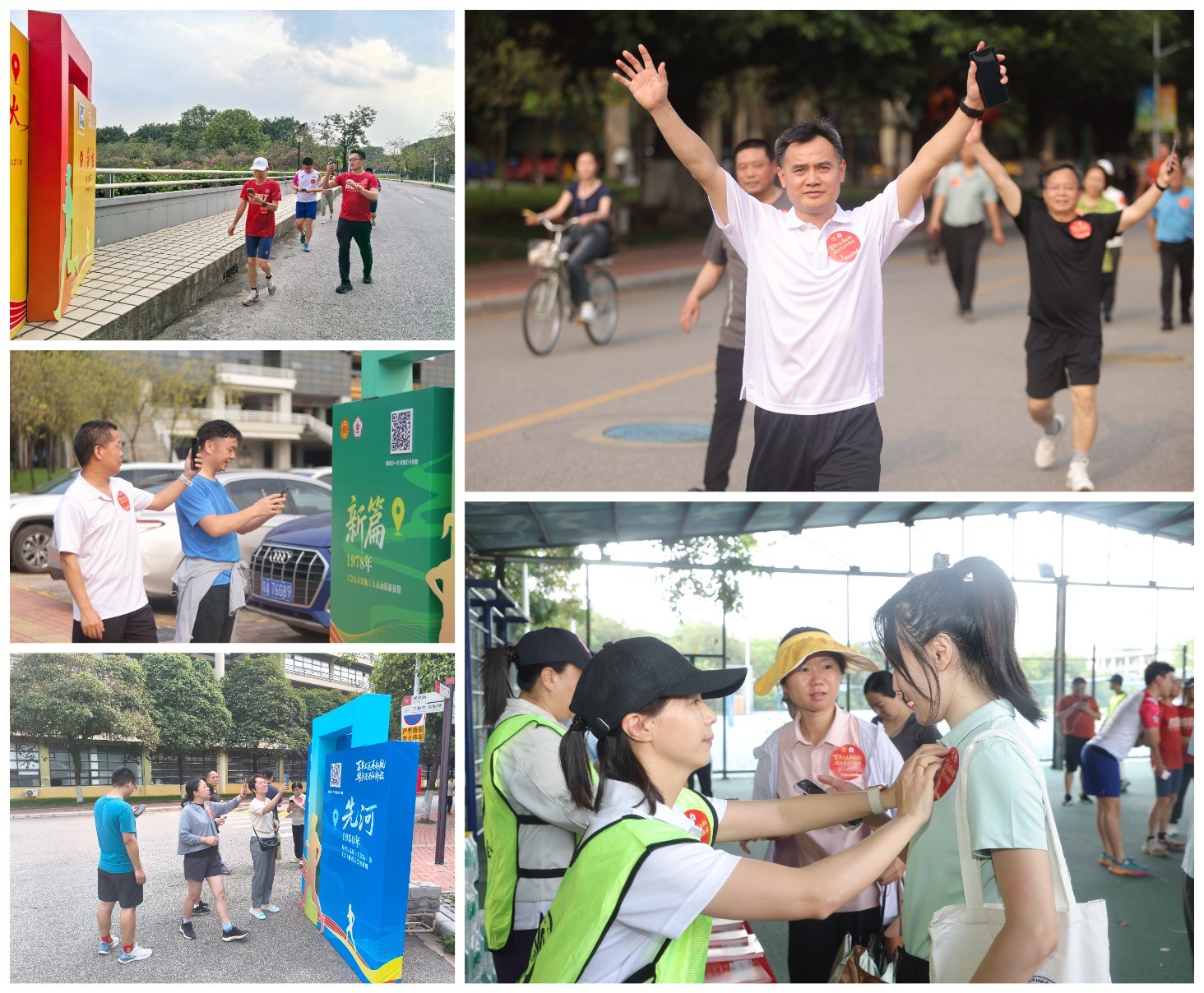 活动以健步走为载体,巧妙地将全国总工会百年奋斗历程与全民健身运动相结合,成为一场别开生面的红色教育与健康生活相融合的特色活动。参与者从国防生综合训练场出发,沿着校园内风景如画的环湖校道,以环形路线开展健步走活动。活动特别设置"工运里程碑"主题打卡点,参与者通过手机扫码,即可解锁中国工运史上具有里程碑意义的关键时间节点,深入了解百年工运波澜壮阔的奋斗历程,在运动中感受红色文化的魅力。