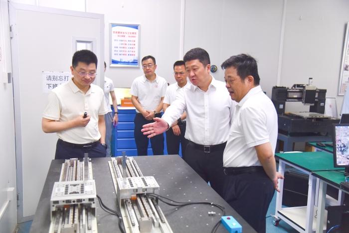 在省部共建精密电子制造技术与装备国家重点实验室,白建刚听取了实验室主任陈新关于实验室建设情况的介绍,详细考察了实验室聚焦“高速高精运动生成与精准运控”“互连微结构阵列精密创成与形性调控”“多物理场精细特征成像机理与缺陷表征”“柔性产线变型设计理论与优化方法”等四大关键科学问题的研究布局,了解了实验室在关键核心技术攻关突破、创新成果转化落地等方面的工作,并就关键技术原理、核心性能指标、成果转化路径及应用场景等问题与陈新等进行了深入交流。