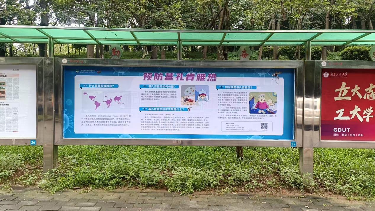 广泛开展宣贯,提高师生防控意识。学校党委宣传部、融媒体中心联动各学院、各单位(部门),利用学校、院系、班级等各层级媒体平台,各类学生联络、管理微信群等发布宣传海报、科普文章、小视频等近百篇/次;在校园主干道、人员密集处悬挂横幅、张贴海报300余处,宿舍重点部位张贴“两热”预防提示;向师生派发预防宣传册、宣传折页,微信群发布“两热”防控提示通知、宣传提醒等,提升师生防控意识。