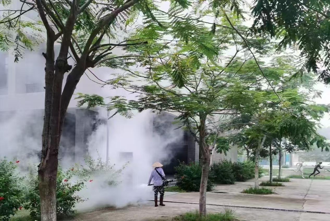 学校坚持科学防控、联防联控,落实蚊媒消杀投药和清理积水。学校总务部除聘请第三方专业消杀公司外,组建物业内部消杀专班,每天开展2次重要时段的校园全方位蚊媒消杀;对校园下水井、下水口、管井、水沟等重点位置投药;对校园室内室外盆栽、阳台、公共卫生间、道路、公共绿化带等清理积水;对公共区域管井缝隙进行封堵;更新及新增防蚊闸、防蚊网、纱窗等防蚊设施。据统计,各校区完成喷雾消杀作业93.27平方公里。
