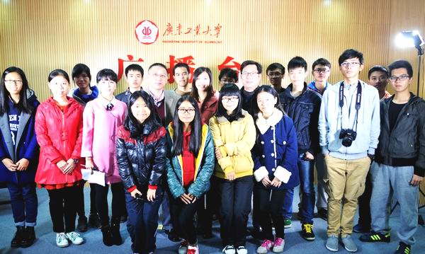在访谈中,章云首先分享了自己难忘的大学时光。谈起当代大学生的学习生活,他说,大学生应当学会充分利用大学里的三大资源:图书馆、实验室,睿智的老师和聪慧的同学。大学教育关键在学会思考!“如果你处于思考状态,你一定会走进图书馆,用好实验室,主动和老师同学交流思想。”大学教育也不再是“老师教,学生学”,而是“老师,教学生学”。广工的学生应该做到“心存志向,坚守责任,学会思考”。最后他还就学生提高综合素质、处理学业与社团关系、摆脱专业困惑等方面倾听并回答了学生的提问。