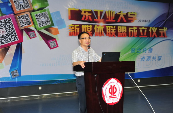 广州日报政文部新闻中心副主任刘旦作为联盟顾问代表作了发言,对学校成立新媒体联盟表示祝贺。他说,在互联网+的时代,广工大在全省高校中率先成立新媒体联盟,是对宣传思想工作的有益探索和实践,很有意义,希望把这一平台建设好,汇聚正能量,助力学校高水平大学建设与发展。