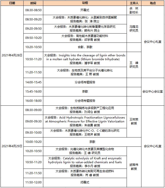会议具体报告安排请参阅http://lignin2021.scholarbee.cn/。