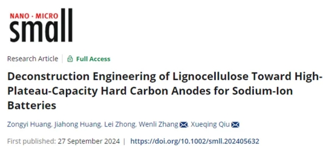 近日,华体会·官方版网站登录入口轻工化工学院邱学青教授/张文礼教授团队开发了一种氢氧化钠选择性刻蚀生物质的方法来制备大封闭孔体积的钠离子电池硬炭负极材料。竹纤维经过刻蚀后,半纤维素和木质素的相对含量降低,纤维素的相对含量提升,同时破坏了其紧密的木质纤维素复合结构,从而在后续的碳化过程中形成丰富的封闭孔结构。经过优化的硬炭BHC5的封闭孔体积从0.15 cm3/g提升为0.26 cm3/g。与直接炭化竹子制备的硬炭BHC相比,BHC5的平台容量提高了88 mAh/g。这种预处理策略可以扩展到制备一系列高封闭孔体积的生物质硬炭负极材料。研究工作以“Deconstruction Engineering of Lignocellulose Toward High‐Plateau‐Capacity Hard Carbon Anodes for Sodium‐Ion Batteries”为题发表于《Small》。