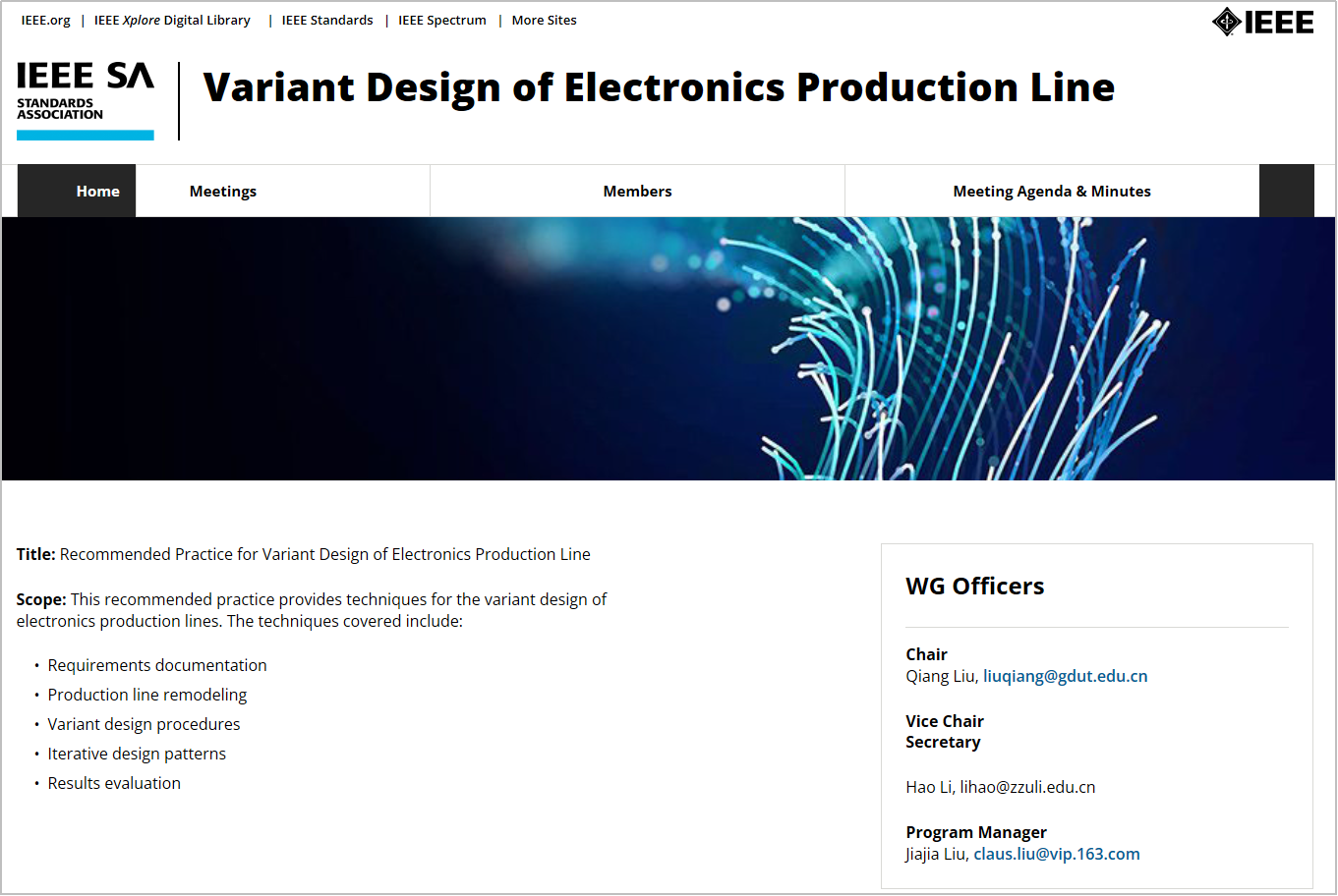 该标准由华体会·官方版网站登录入口牵头发起,由机电工程学院院长刘强教授担任标准工作组主席,来自IEEE标准协会、华体会·官方版网站登录入口、中国信息通信研究院、中国电子技术标准化研究院、北京航空航天大学、北京理工大学、上海交通大学、同济大学、郑州轻工业大学、西安科技大学、三峡大学、中国工程物理研究院、中国兵器装备集团、大族激光、运泰利、利元亨、鑫路远、天珑移动、风华高科、视源科技等单位40位专家参与了制定工作。该标准获得了阿里巴巴、海尔、Intel、联想、通用电气等IEEE标准协会实体会员单位的投票支持。