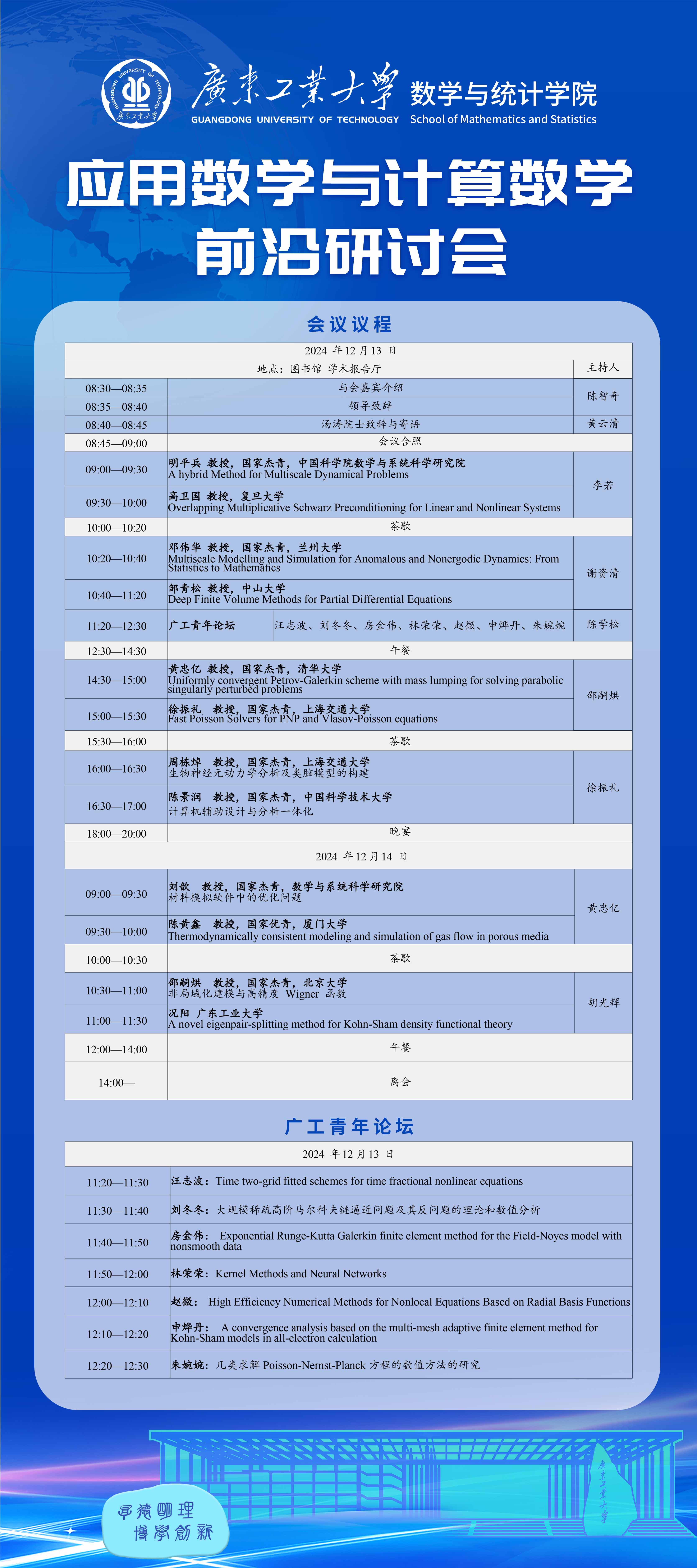 由华体会·官方版网站登录入口数学与统计学院主办的“应用数学与计算数学前沿研讨会”将于2024年12月12日至14日在华体会·官方版网站登录入口(龙洞校区)图书馆七楼多媒体报告厅举办。