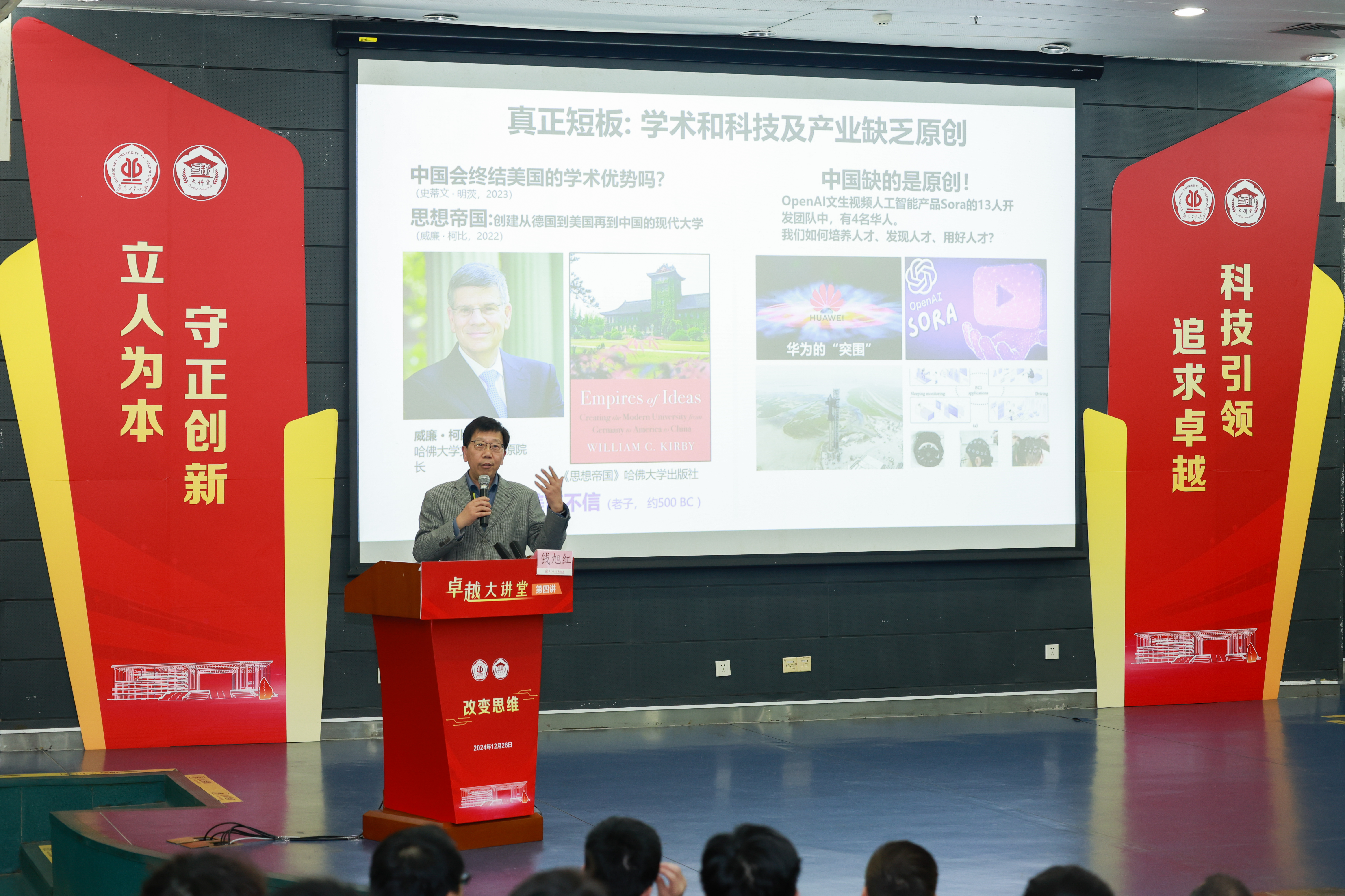钱旭红院士首先提出以不同的视角看待世界,要意识到大国竞争的焦点是科技、教育和人才;接着,从量子思维体系和老子思维体系展开对比,强调了思维对人类文明及未来发展的影响;最后,钱院士指出未来学科专业的特点将是科学、艺术和工程的融合,并提出改变思维重塑高等教育和人才培养的重要观点。