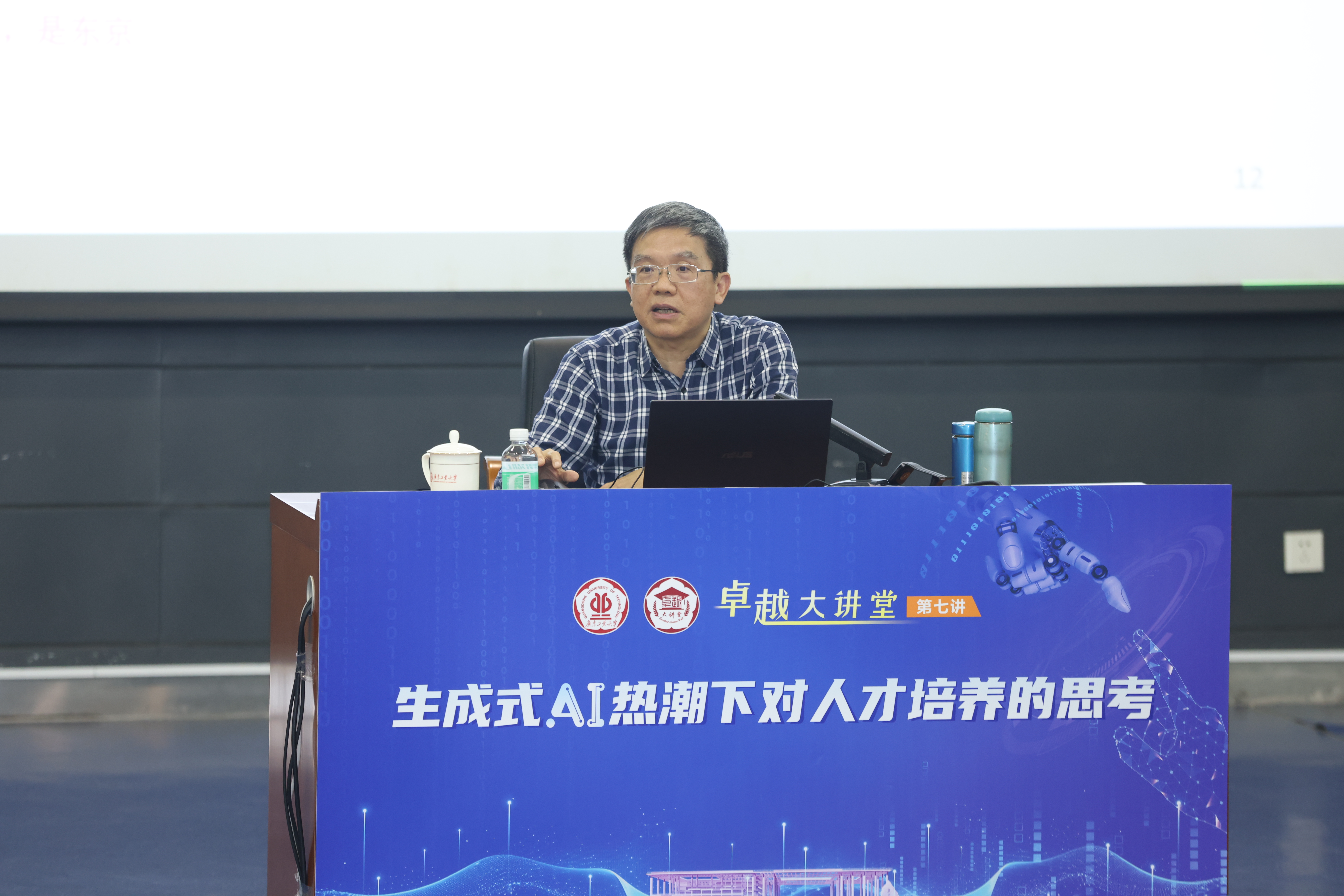 报告中,李清彪教授系统梳理了生成式人工智能的崛起背景、演进历程及应用领域,通过演示AI编程辅助、跨模态内容生成等前沿应用场景,生动展现了人工智能技术对知识生产方式的颠覆性改变。李清彪教授认为,面对人工智能技术的快速发展,教育工作者需要不断更新知识体系,掌握最新的教育技术和方法,注重培养学生的批判性思维和创新能力。他引用了大量国内外最新研究成果,内容前沿充实,论述生动深刻,引起了在场师生的强烈共鸣。最后,李教授指出,高校应对标人工智能时代对人才的新需求,立足学校自身发展实际,精准定位学校发展特色,锚定人才培养目标,着力提升办学质量。