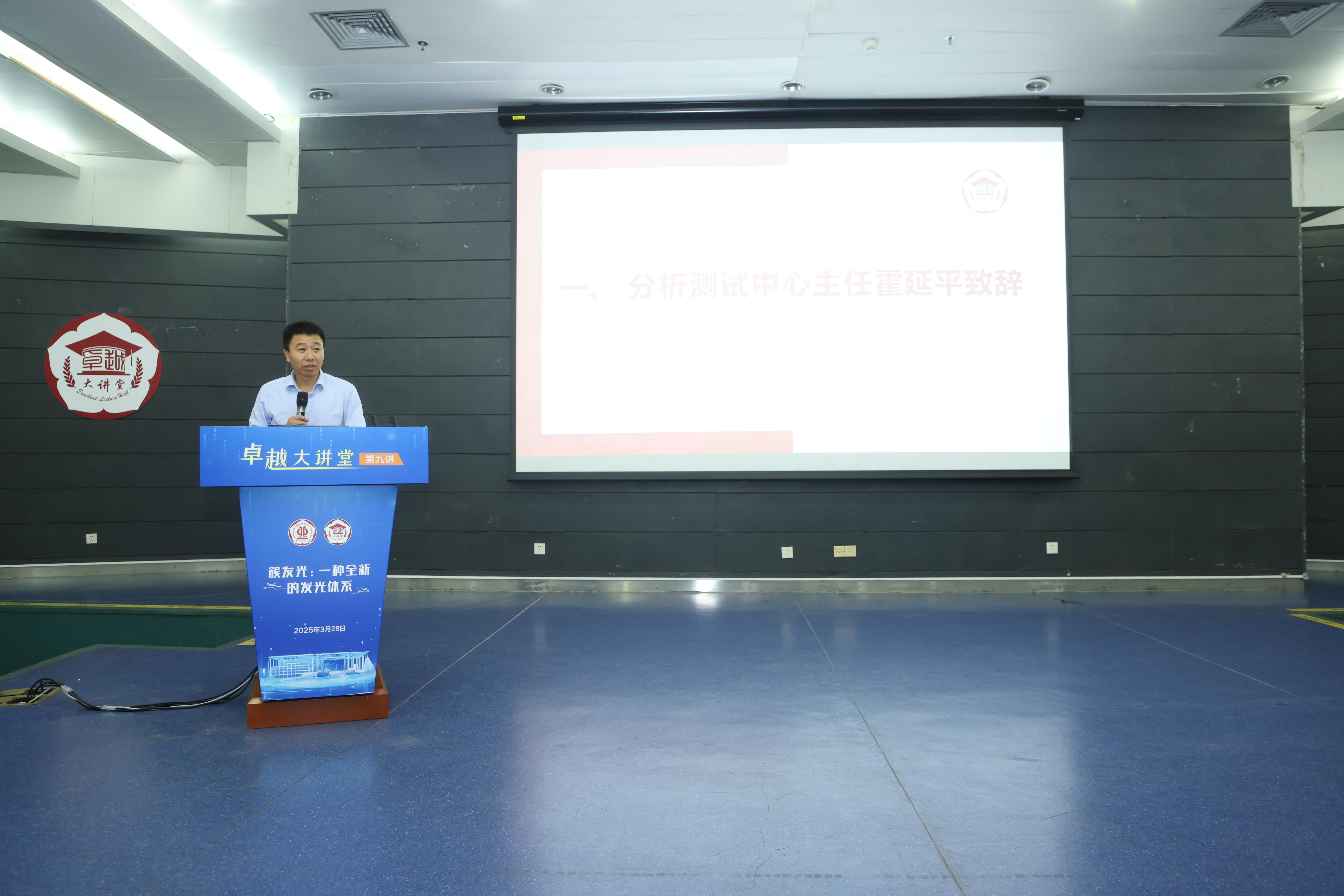 3月28日下午,中国科学院院士、发展中国家科学院院士、香港中文大学(深圳)理工学院院长唐本忠教授做客华体会·官方版网站登录入口“卓越大讲堂”,围绕“簇发光:一种全新的发光体系”的主题,带来了一场精彩的学术报告。学校党委常委、副校长杜承铭会见了唐本忠院士并聆听报告。分析测试中心主任霍延平教授主持报告会,相关领域教师及研究生超过300人参加本场讲座。