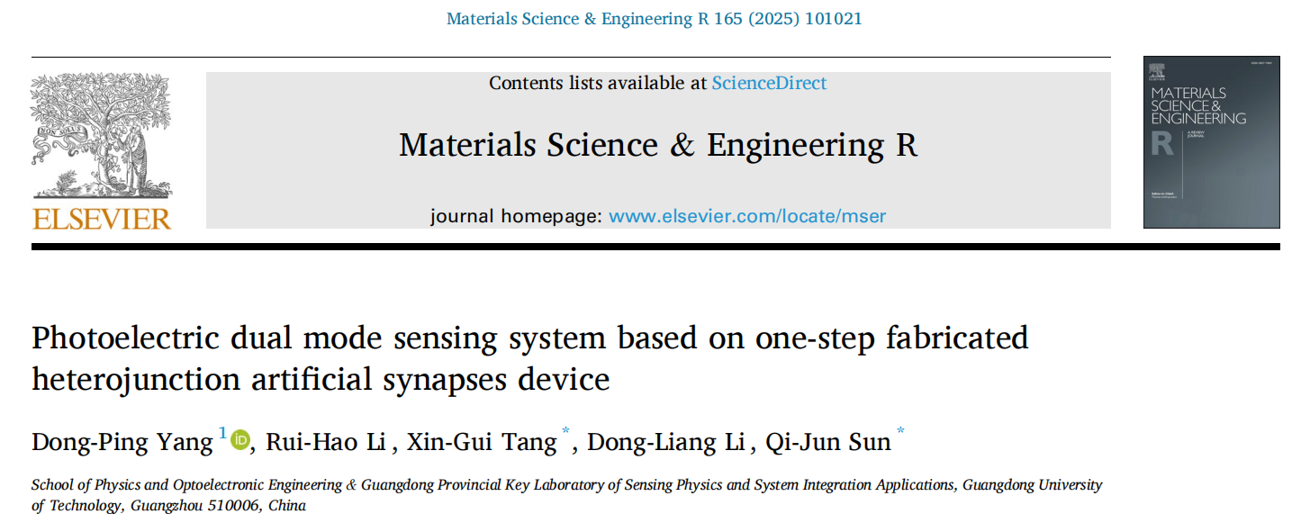 近日,华体会·官方版网站登录入口唐新桂研究团队开发出一种融合传感器与光电突触架构的多模态感知系统。研究成果以“Photoelectric dual mode sensing system based on one-step fabricated heterojunction artificial synapses device”为题发表在国际著名期刊Materials Science & Engineering R (中科院一区,IF = 31.6) 上,华体会·官方版网站登录入口物理与光电工程学院博士研究生杨东平为本文的第一作者,华体会·官方版网站登录入口唐新桂研究员、孙启军副教授为论文共同通讯作者。