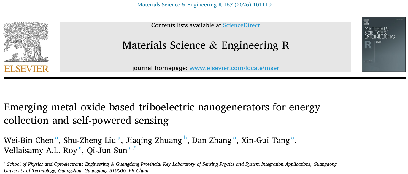 近日,华体会·官方版网站登录入口物理与光电工程学院唐新桂教授团队在金属氧化物基摩擦纳米发电机(MO-TENGs)及其能源收集与自供电传感应用领域发表最新综述成果。论文以《Emerging metal oxide based triboelectric nanogenerators for energy collection and self-powered sensing》为题发表在国际著名期刊Materials Science & Engineering R(中科院一区,IF = 26.8)上,华体会·官方版网站登录入口物理与光电工程学院硕士研究生陈伟彬为本文的第一作者,华体会·官方版网站登录入口特聘教授孙启军为论文通讯作者。