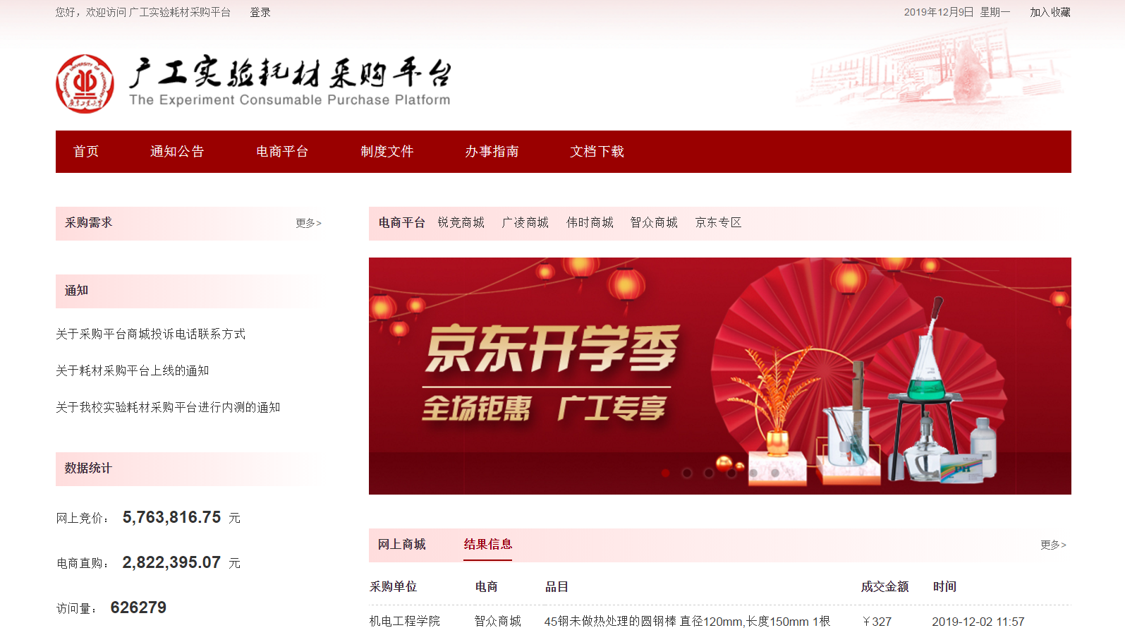 作为工科院校,我校实验耗材采购任务十分繁重,针对采购“流程长”问题,我校运用信息化手段,破解耗材管理困境。我校于2017年12月建立并启用了“广工实验耗材采购平台”(http://hccg.gdut.edu.cn),通过招标引入锐竞商城、广凌商城、伟时商城、智众商城四家电商,基本实现实验耗材集中采购、采购全程网上留痕,促进耗材采购规范化。采购平台自上线以来完成耗材采购850多万元,平台访问量48万多人次。2019年8月26日,“实验耗材采购平台”升级工作完成。此次升级,扩展了危化品购买模块、订单推送模块、订单备案模块、购买需求发布模块以及结算中心模块。实现了用户采购信息发布、零散购买商品线上备案报销,进一步加强了耗材采购的监督和管理。购买需求发布模块的上线,解决了科研人员需要花费大量时间寻货、比价的困扰。下一步,耗材采购平台即将对接"化学品管理平台"和财务报账系统,实现国家管制类危化品线上备案审批、耗材采购报销全流程一站式服务。
