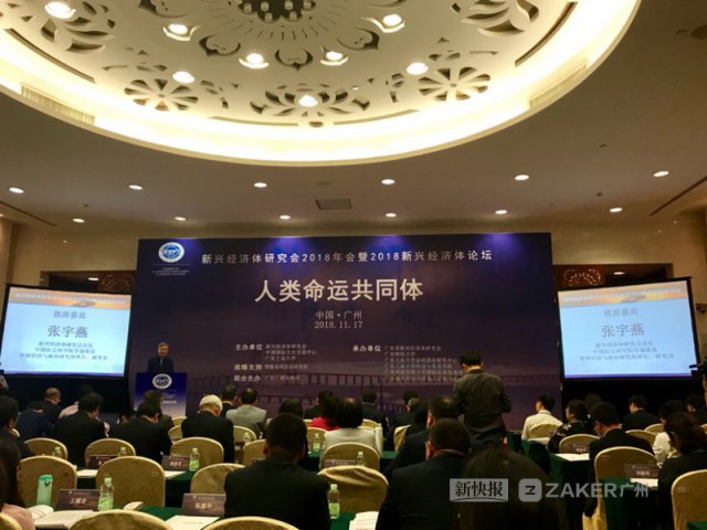 2018 年 11 月 17 日,新兴经济体研究会 2018 年会暨 2018 新兴经济体论坛在广州白云国际会议中心举行,此次论坛以 " 人类命运共同体 " 为主题,来自中国社会科学院、中国国际文化交流中心、复旦大学、中国人民大学等国内 40 多所大学、研究机构以及部分企业的近 200 名专家、学者、企业家和官员代表参会。