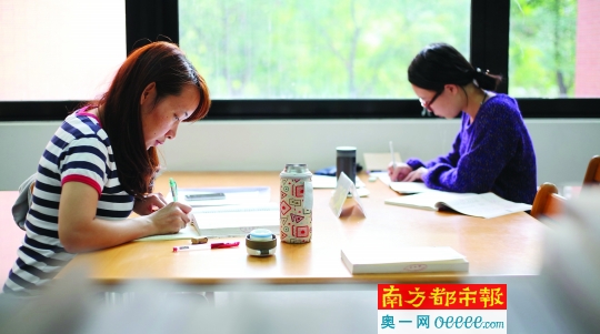 大学生们在自习。