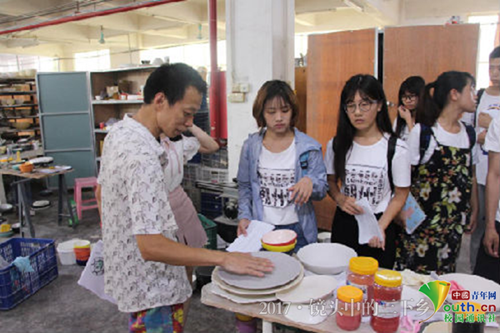 调研团队在松发公司陶瓷展厅的实地考察。中国青年网通讯员 彭键桐 摄