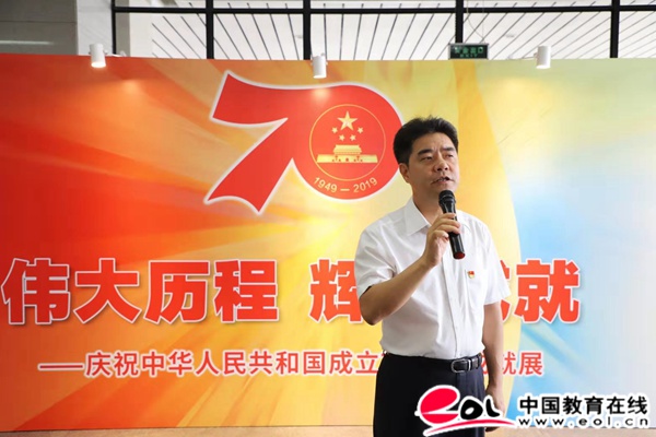 陈新说,学校举办这次展览,除了组织广大党员和师生观展,也组织教师在展览现场给学生上新中国史教学课,让学生走出教室,在观展中面对一幅幅珍贵的历史照片,聆听老师对新中国成立70年来的光辉历程、伟大成就、宝贵经验的讲课,课程更直观,更生动。让师生在观展中、在教学课堂中加强爱国主义教育,弘扬爱国主义精神,更好地学习党史、新中国史,更好地知史爱党、知史爱国。
