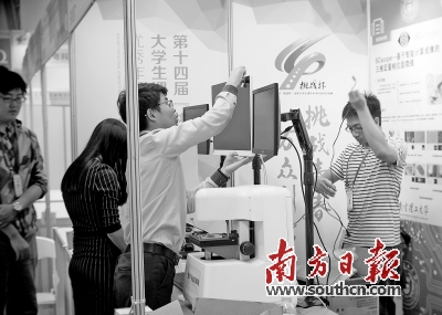 各渠道充沛资金流的覆盖,正让精心培育的广东大学生“小科技”,逐渐成长为各个社会领域的“大创新”。据统计,今年“攀登计划”培育的1000个大学生科技创新项目全部入围“挑战杯”竞赛,省赛108份特等奖作品绝大部分来自于“攀登计划”,全面涵盖了机械控制、电子信息、生命科学、能源化工各个领域,助推创新驱动发展战略在大学“落地生根”。