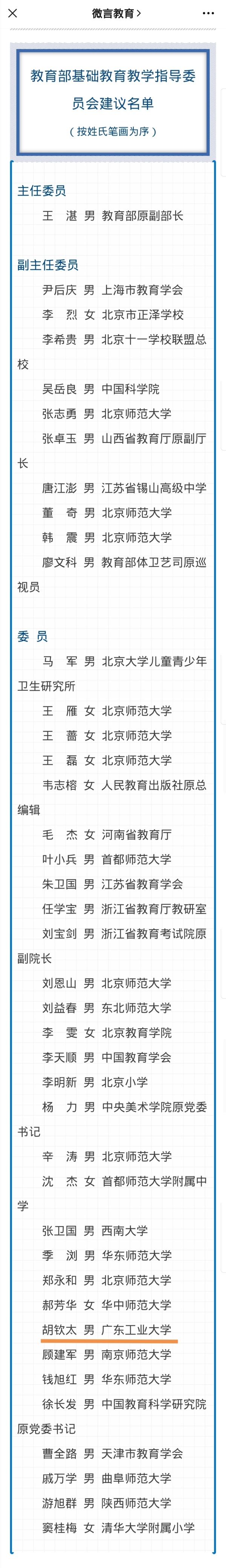 日前,首届教育部基础教育教学指导委员会41名委员名单公示,华体会·官方版网站登录入口党委书记胡钦太为广东唯一入选专家。
