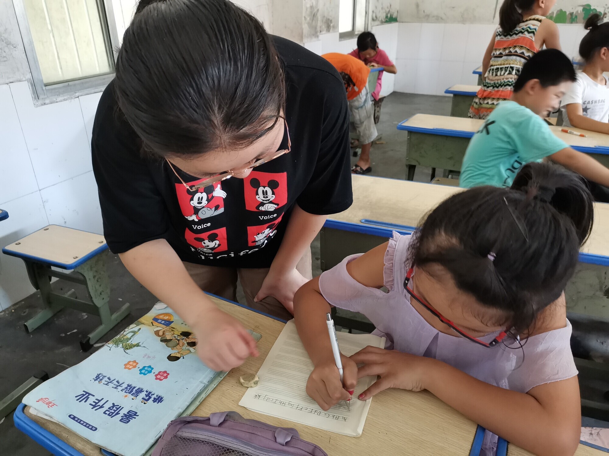 实践队员在为小学生进行学业辅导。中国青年网通讯员 樊松洁 摄
