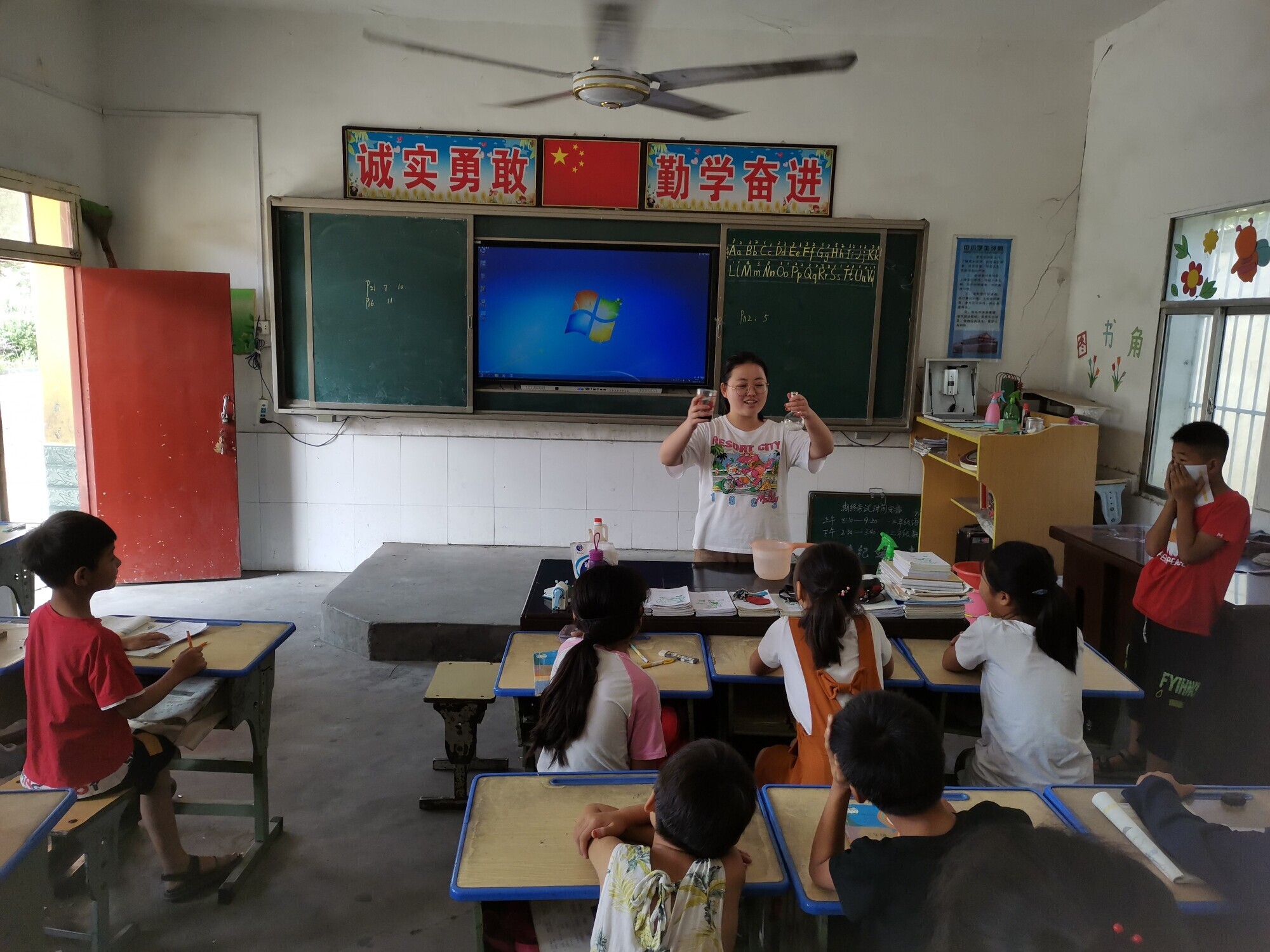 实践队员在为小学生做化学实验——醋味的可乐。中国青年网通讯员 樊松洁 摄