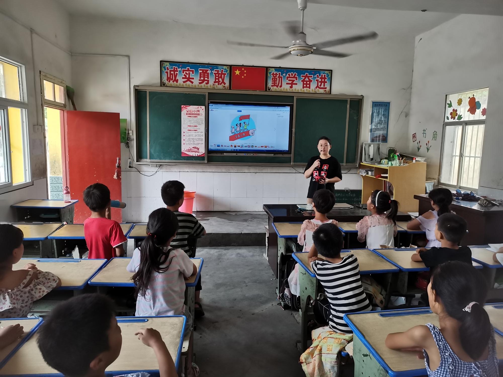 实践队员在为小学生进行全面小康知识讲解。中国青年网通讯员 樊松洁 摄