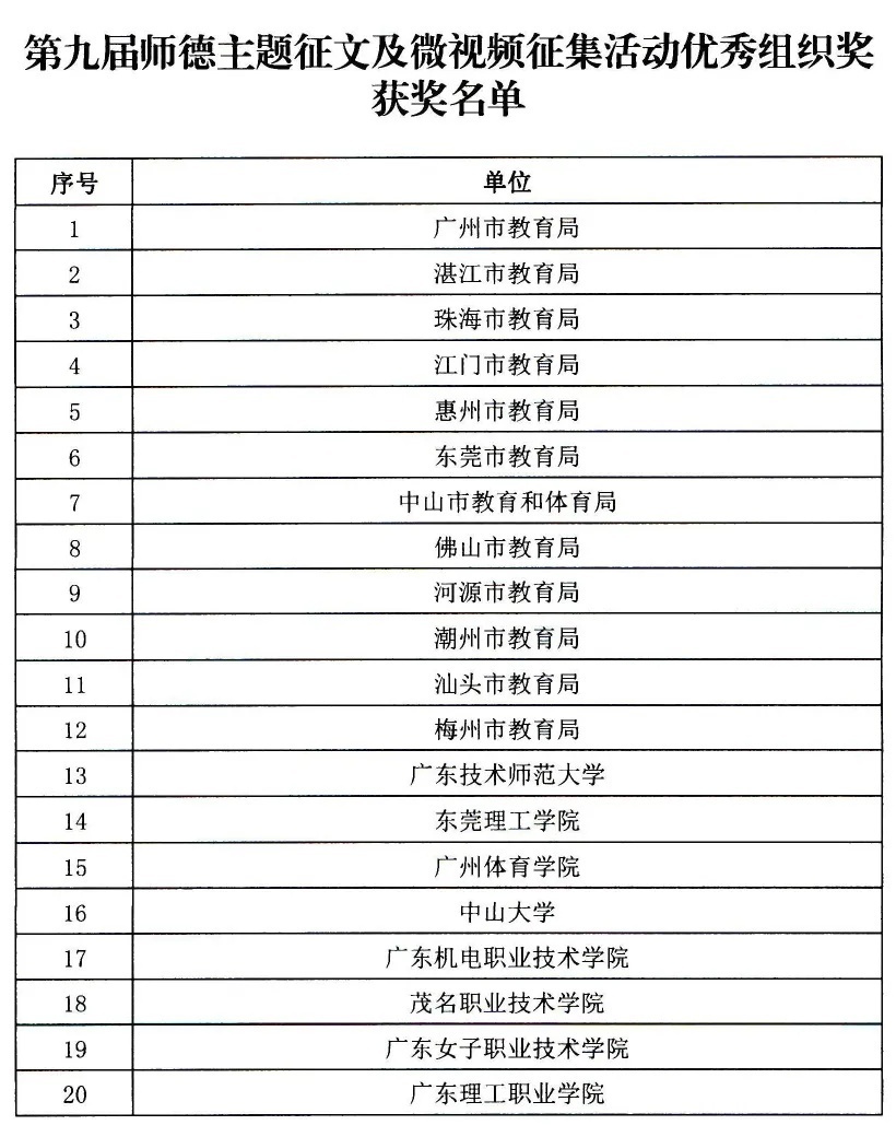 老师们看过来!广东省教育厅委托广东教育杂志社组织开展的“自觉爱国守法,潜心教书育人”第九届师德主题征文及微视频征集活动获奖名单正式公布啦~