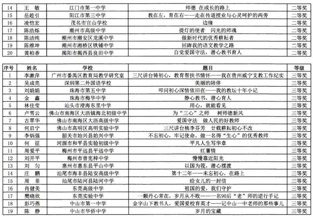 老师们看过来!广东省教育厅委托广东教育杂志社组织开展的“自觉爱国守法,潜心教书育人”第九届师德主题征文及微视频征集活动获奖名单正式公布啦!