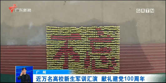 9400多名新生组成的汇演方队,动态摆出“不忘初心 牢记使命 只争朝夕 接续奋斗 ”、“党徽”等图样、字样,为中国共产党建党100周年献礼。
