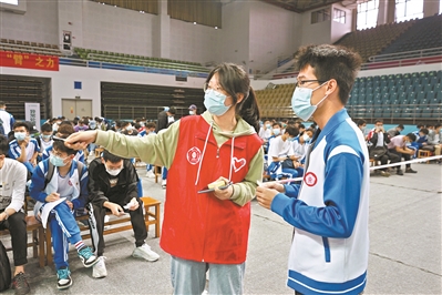 学生接种疫苗前,学校线上和线下相结合,全面做好疫苗接种的宣传教育工作。提前一周通过线上给学生推送疫苗接种的相关安排和科普知识;在线下,通过召开主题班会等,宣传疫苗接种的有关知识。教务部门根据疫苗剂量,按最优的教学调整安排,确保接种后的2小时内无教学安排,当天无剧烈运动体育项目。