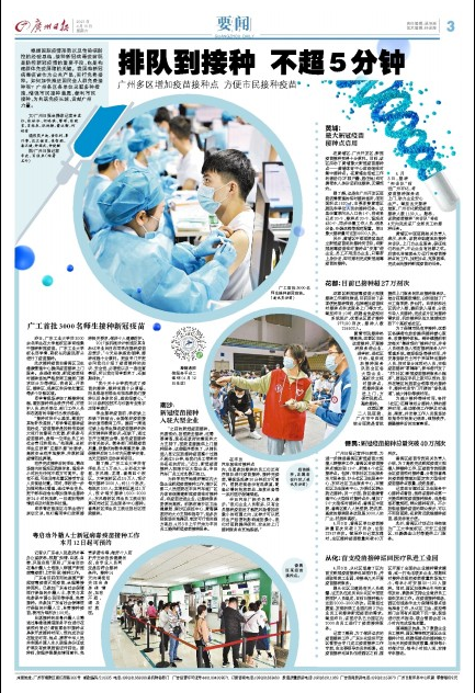 番禺区疫苗专班有关负责人介绍,为了高效完成新冠疫苗大规模人群接种工作,区疫苗专班根据全区疫苗预约接种量、分配到番禺的疫苗数等增加固定和大型临时疫苗接种点数量,成效显著。